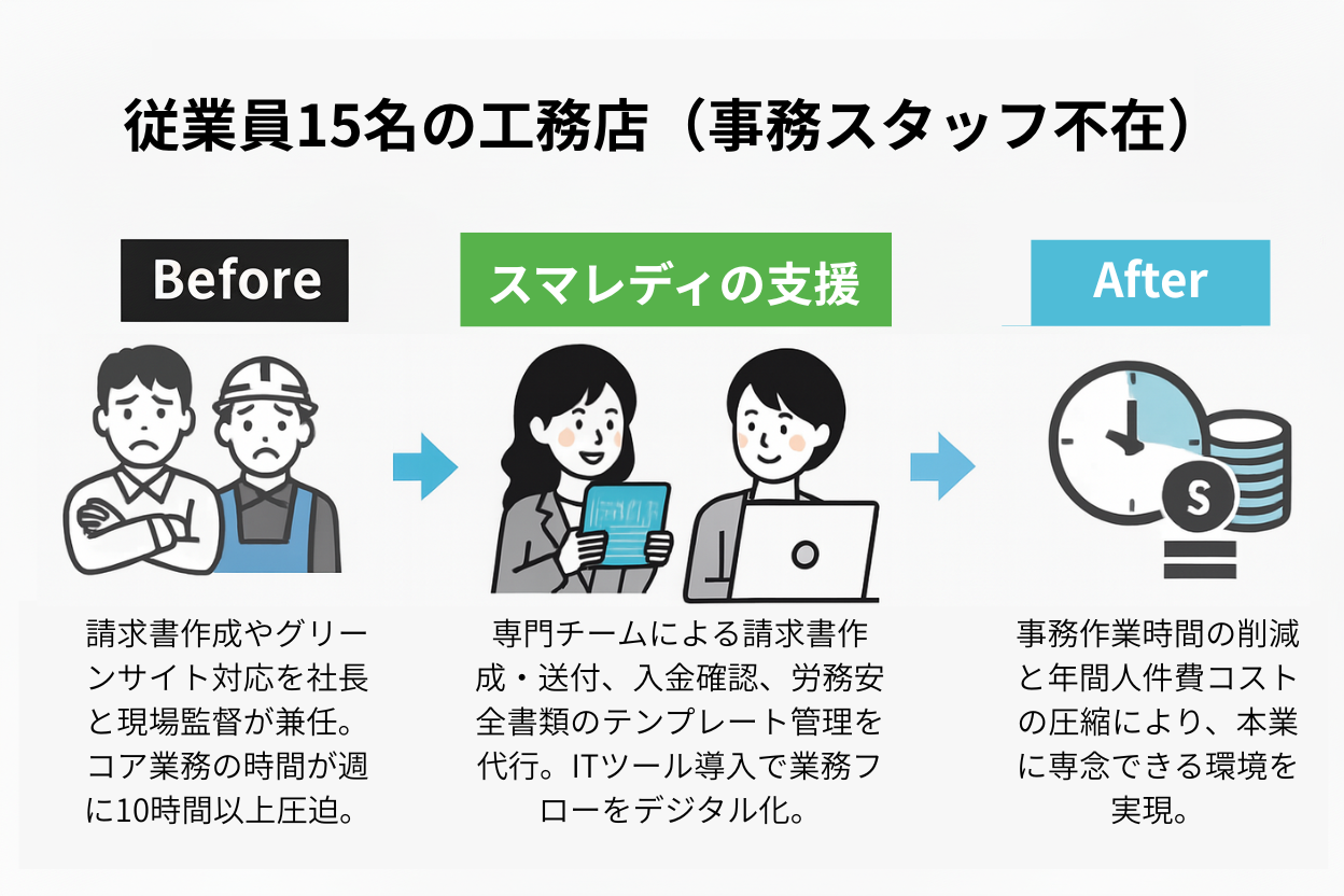 「スマレディ for 建設業」の導入は、単なる事務代行ではありません。