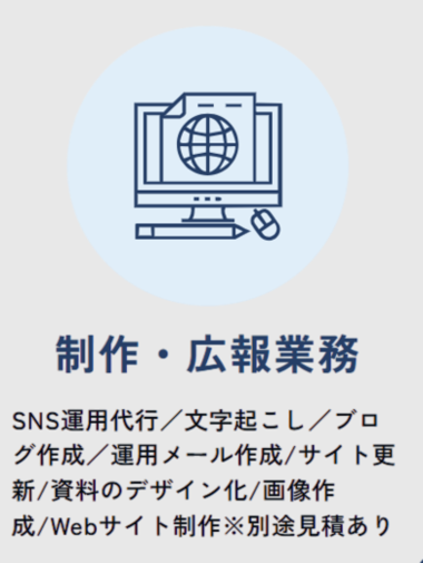 スケジュール管理や各種調整を含む秘書業務、イベントや組織運営を支える事務局業務、さらに制作・広報業務までカバー。バックオフィス全般をワンストップで支援します。