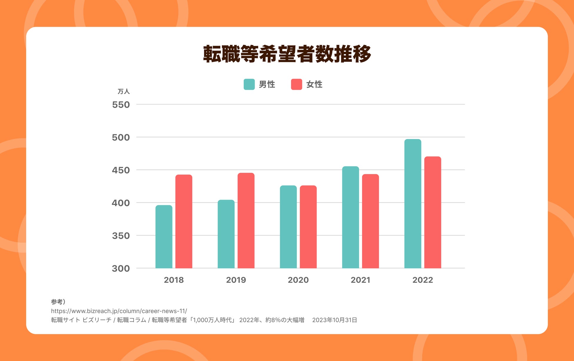 近年、雇用は変化しつつあります。終身雇用の崩壊により今後キャリアは自身の力で育成するものと考えています。変化し続けるであろう社会に対応するために必要なスキルを身につけるための転職、キャリアチェンジが当たり前の時代が日本にも到来しました。この変化により近年では転職希望者が増加しています。