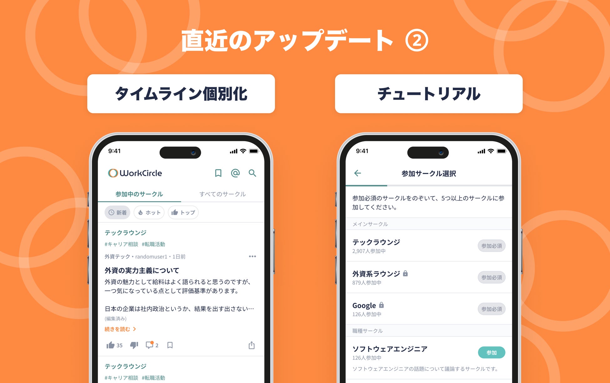 WorkCircleでは常時さまざまなトピックが議論されています。ユーザーがWorkCircleに求めるコミュニティは十人十色のため、各種サークルを参加型に変更し、参加しているサークルの投稿のみが表示される個別タイムラインを別途用意しました。