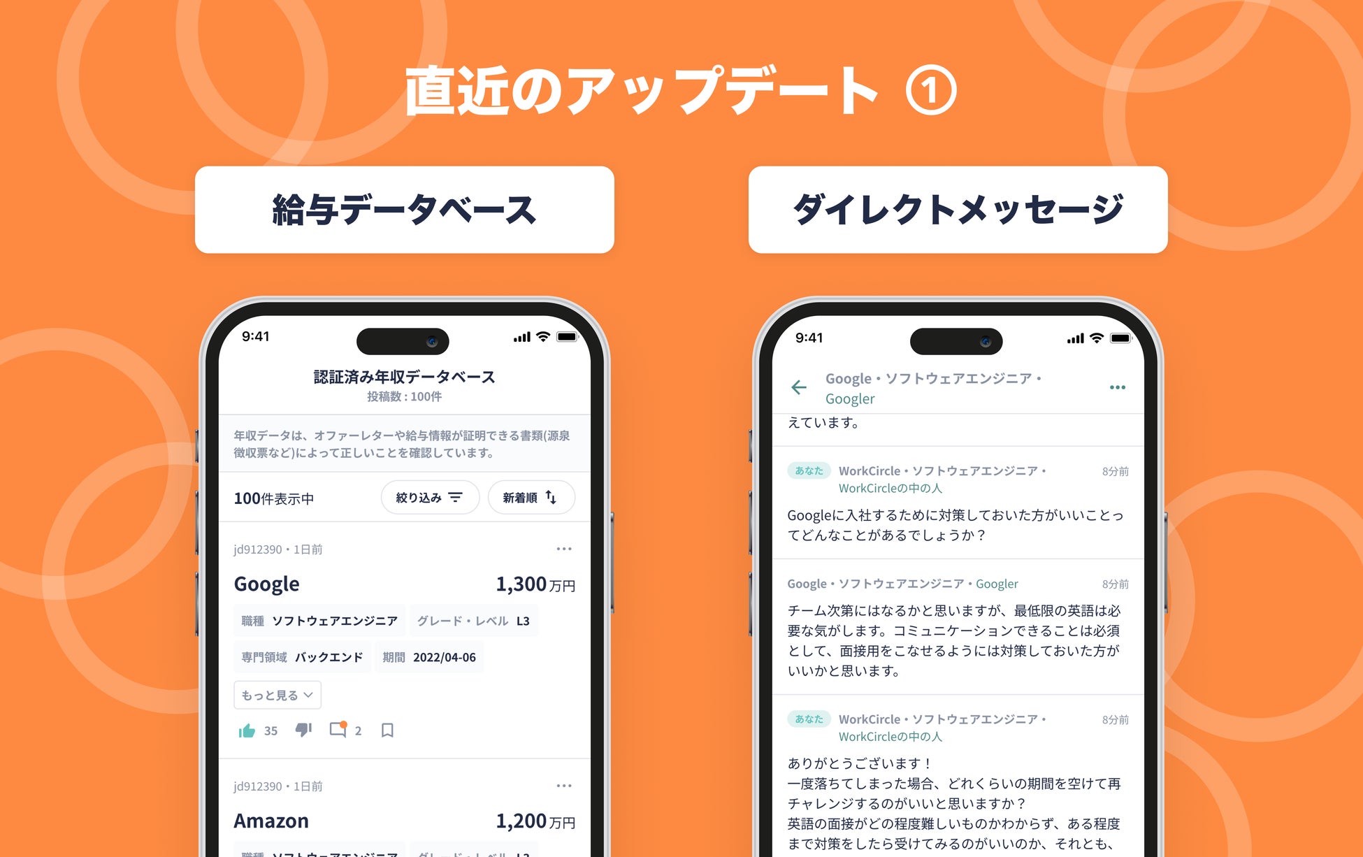 2023年3月8日にリリースしたWorkCircleは「テック業界で働いている」という共通点を持った人々が繋がり、自由に本音で語り合える匿名コミュニティです。情報格差のリアルを継続的に提供してきたWorkCircleでは既に1,000社、5,500名以上のユーザーにご登録いただいており、キャリア、年収、ライフイベントから恋愛まで、社内や人前では相談しづらいトピックが日々議論されています。