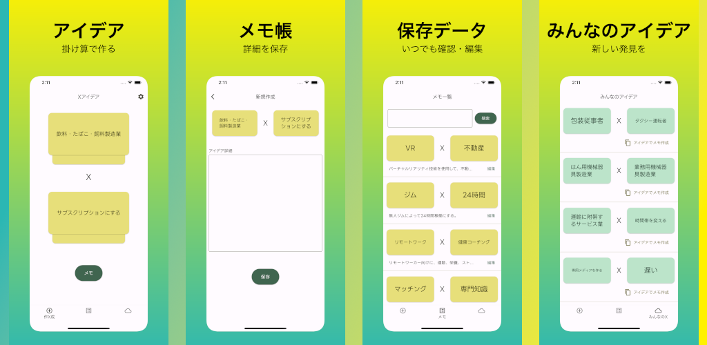 アイデア発想メモアプリ「X(エックス)アイデア」をリリース