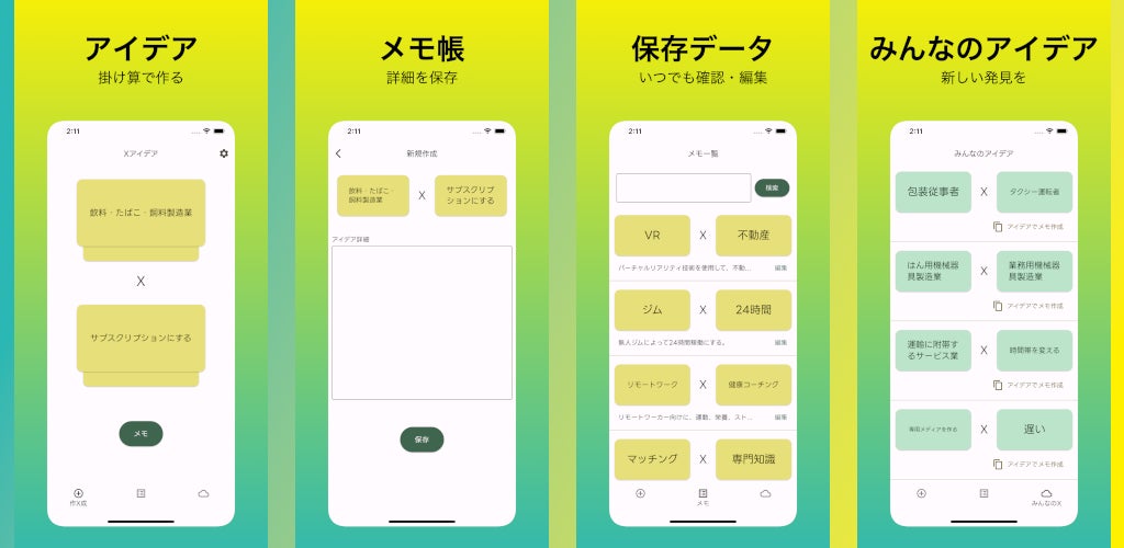 新しいビジネスアイデアをスマホで発想!2つの物事を組み合わせて、自分だけのアイディアをメモするアプリが登場