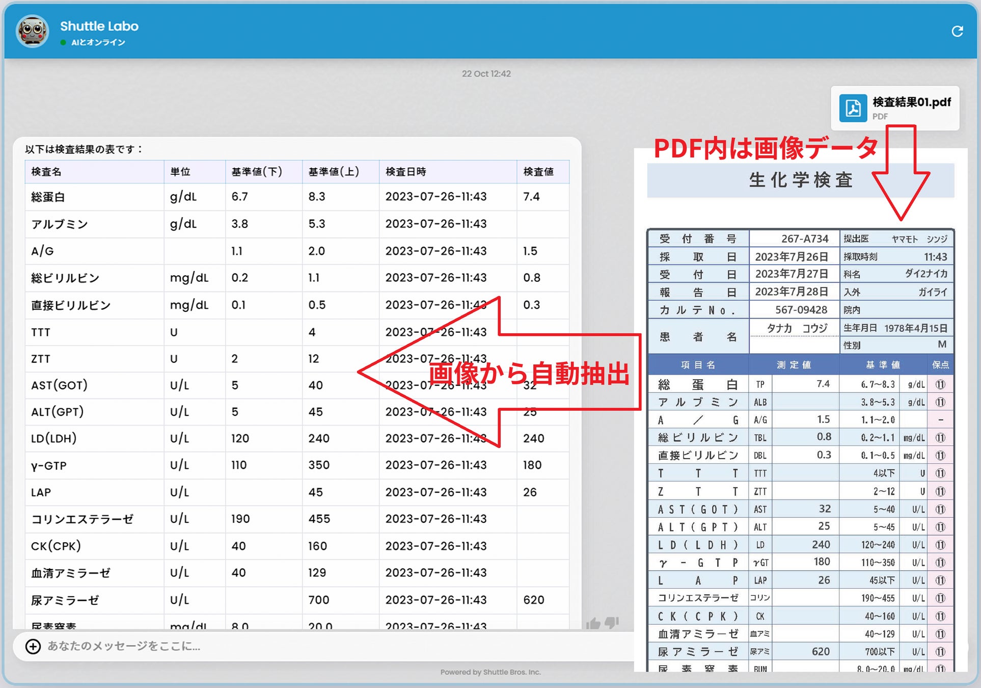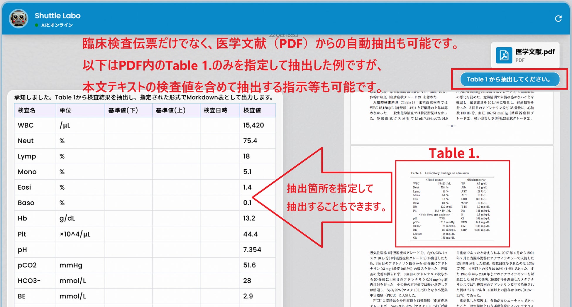 Shuttle Bros.株式会社が臨床開発・ファーマコビジランスなどで扱う臨床検査伝票・医学文献のPDF・画像から検査データを自動抽出する【Shuttle Labo】を提供開始(無料お試し可)