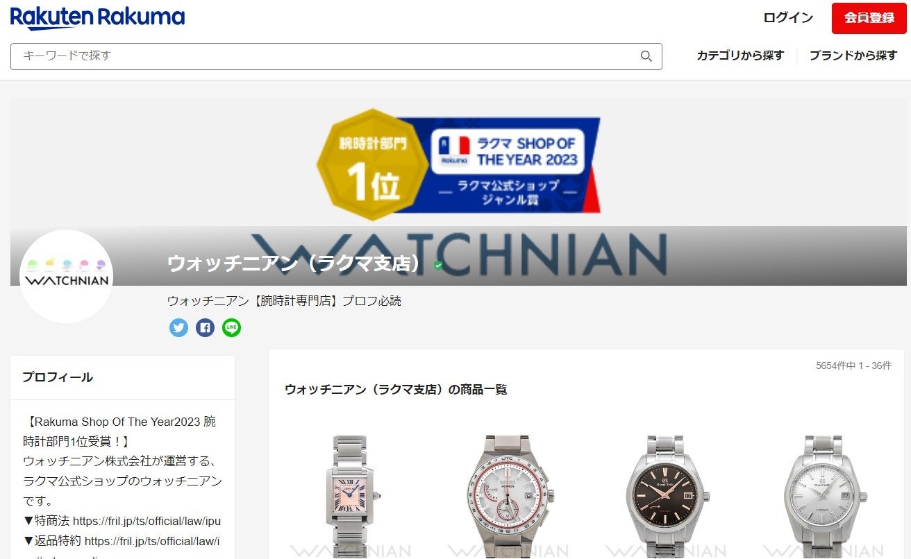 ウォッチニアンは、「ラクマ ショップ・オブ・ザ・イヤー2023」にて、商品カテゴリ別に優れたショップを選出する「ジャンル賞」の腕時計部門1位に輝きました。腕時計部門で1位を獲得したことは、当社が品質の高い時計と店舗としての信頼性を提供し、お客様からの強い支持を受けていることを示しています。