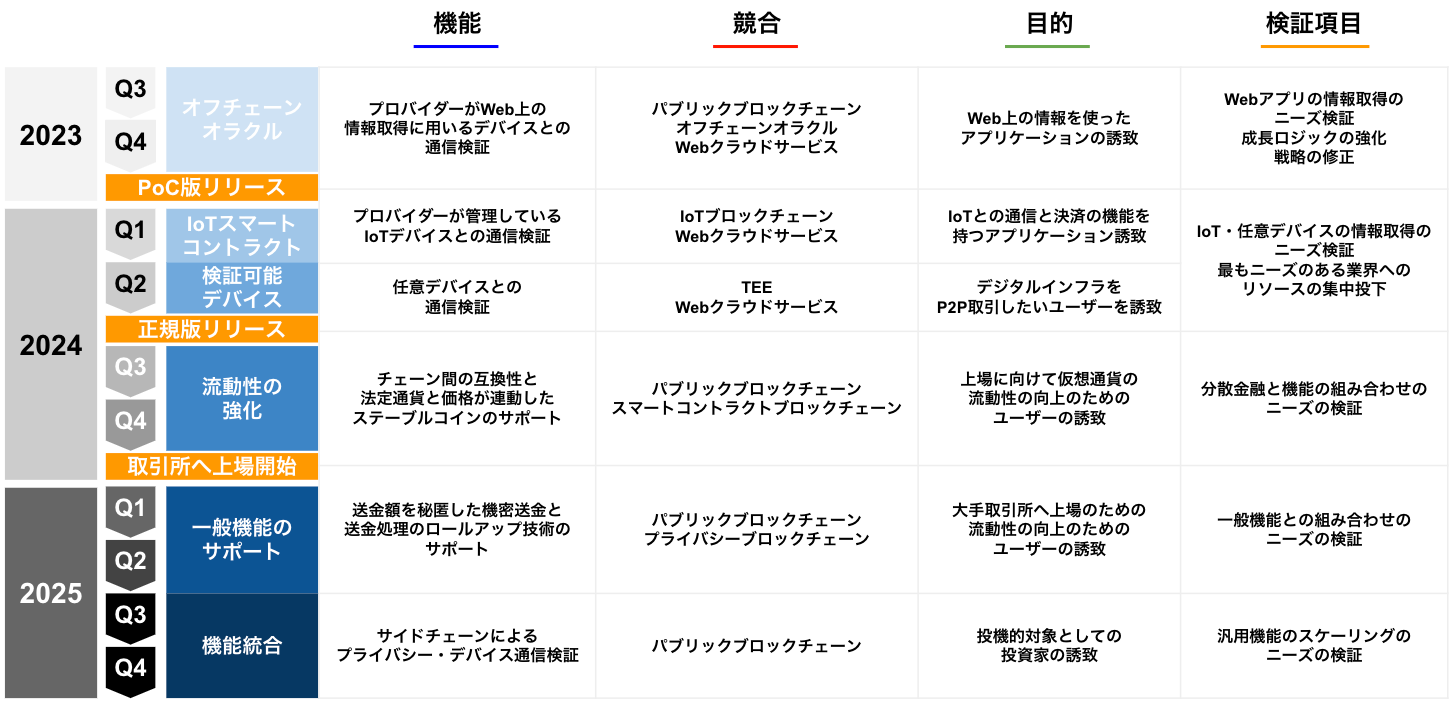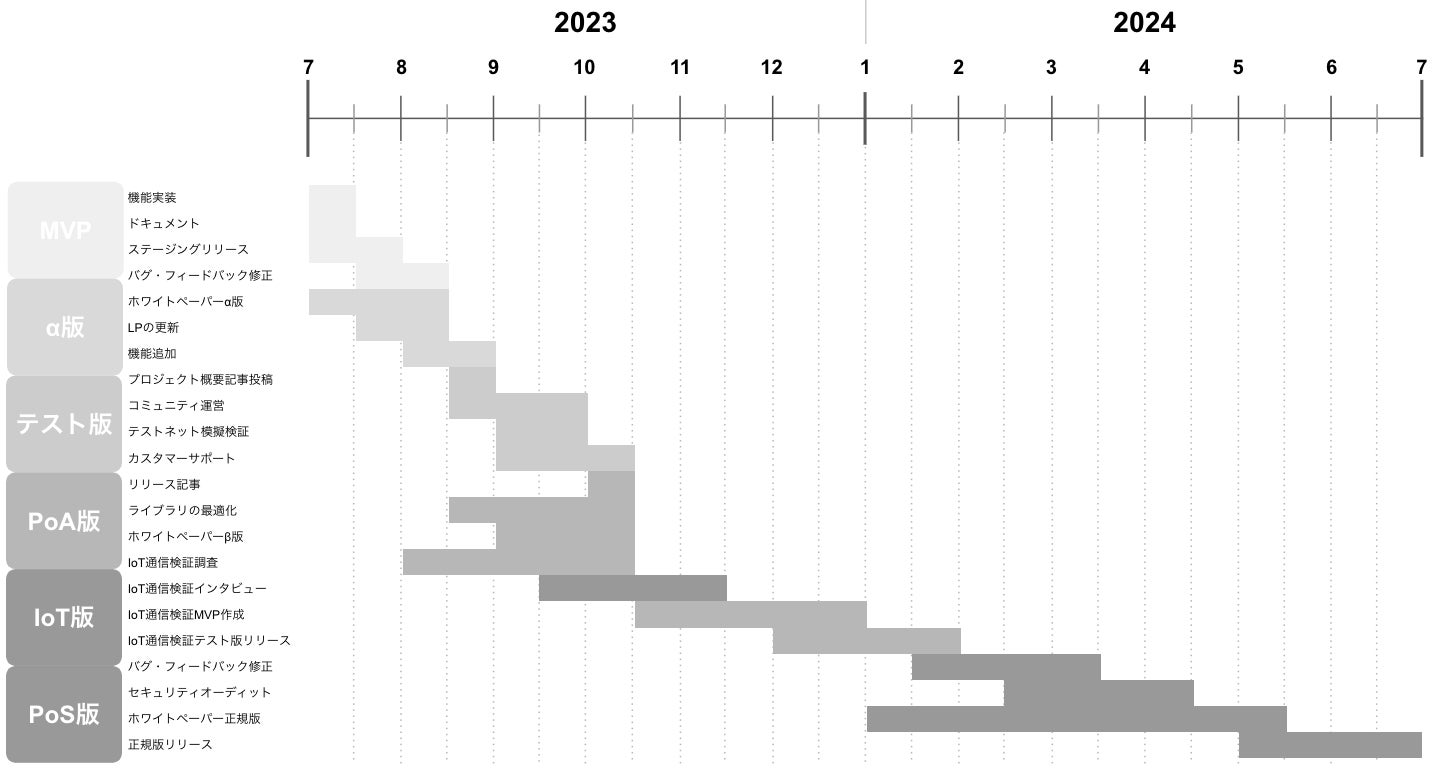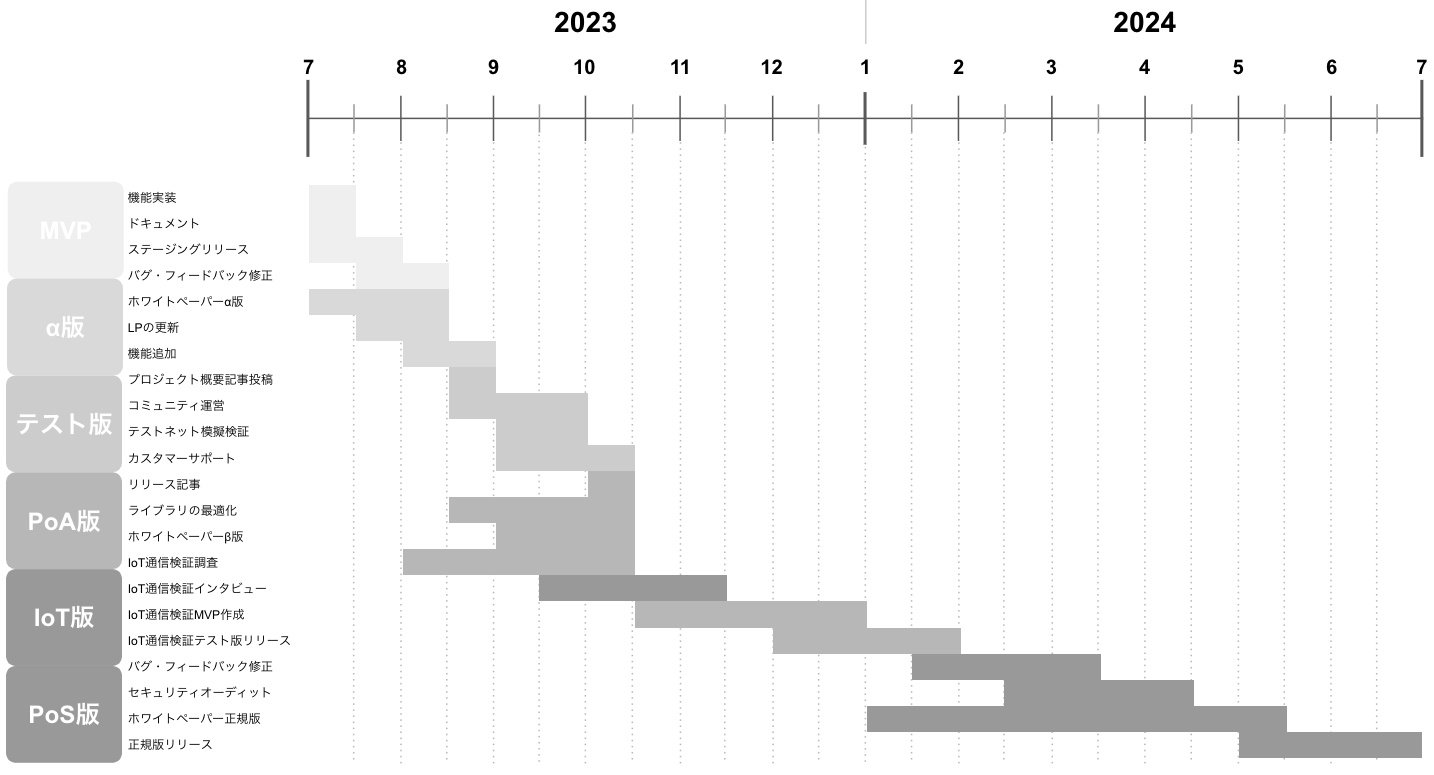 KogarashiはPolkadotのパラチェーンとしてリリースされる予定で以下が長期のロードマップになります。