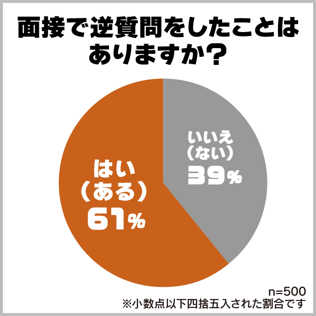 「逆質問をしたことがありますか?」という問いに対しては、61%の人が「はい」と答えています。