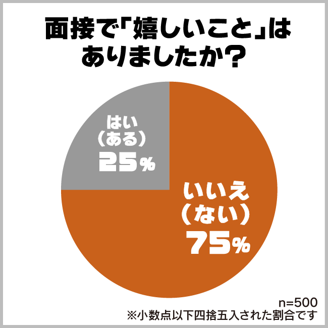 面接で嬉しいことがあったか聞いたところ、25%の人が「はい」と答えています。