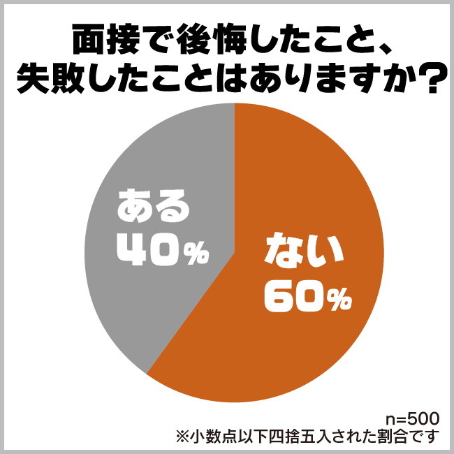 実際、面接で「失敗した」「後悔した」と感じている人は40%にものぼります。