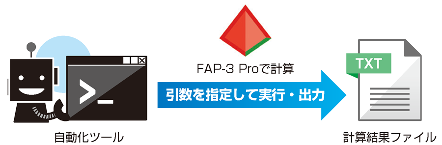 起動する引数と入力ファイルを指定することで、ソフトウェアを起動することなく、弾性応力解析と断面計算を実行できます。最適化ソフトウェアなどの外部のツールからモジュールとして利用することができます。