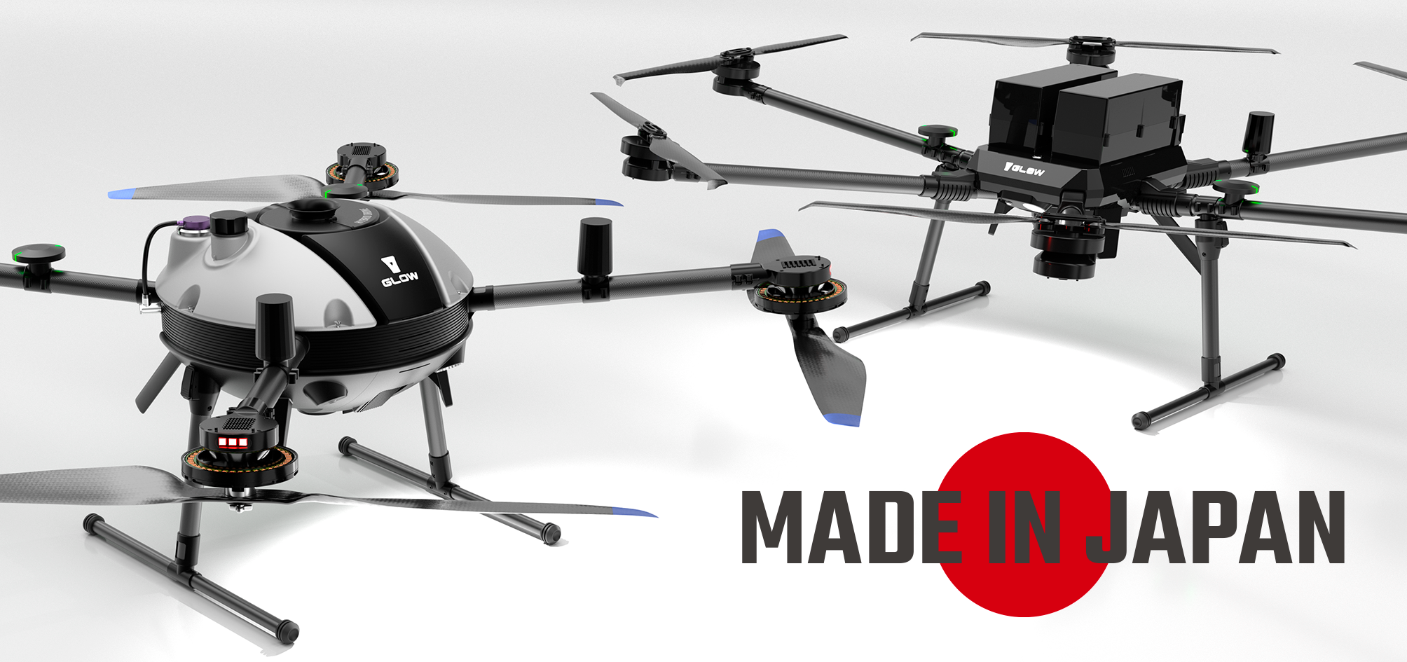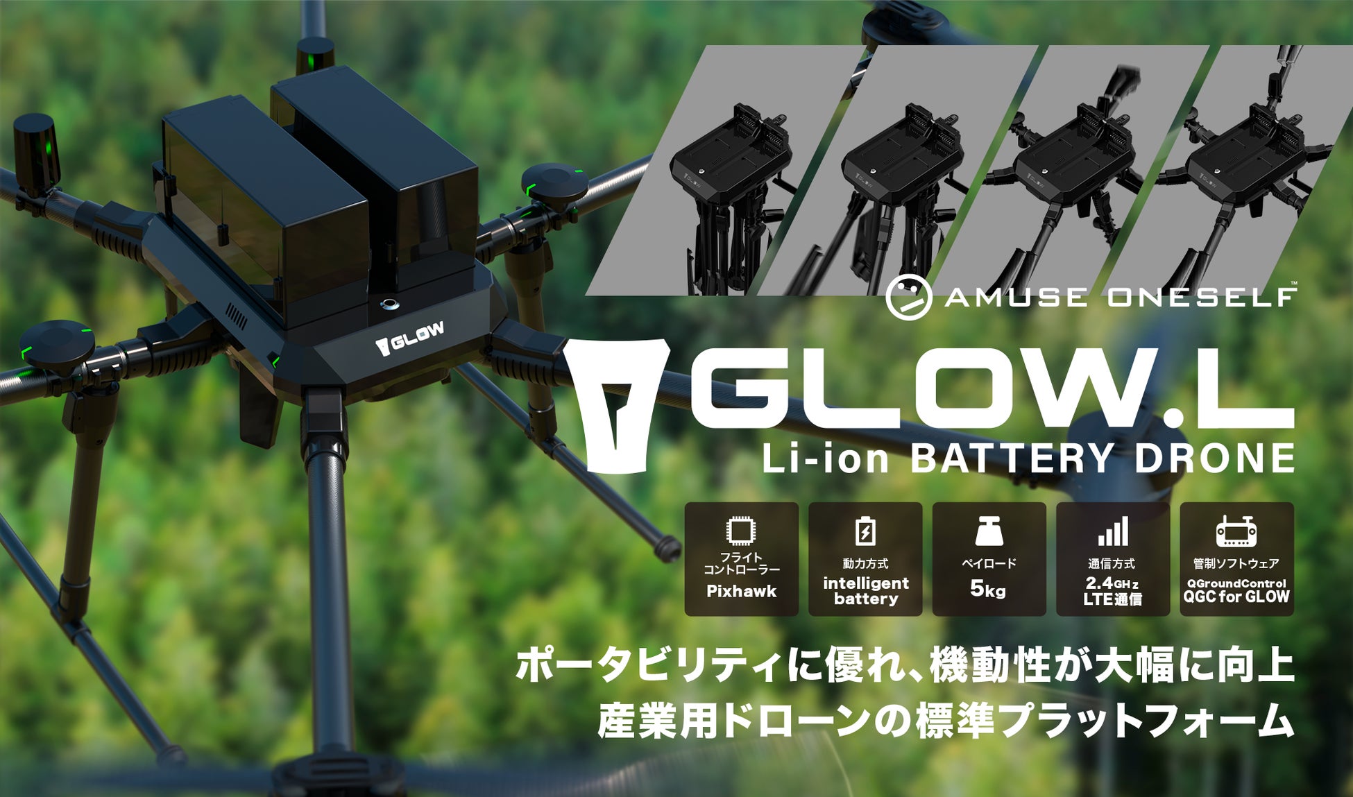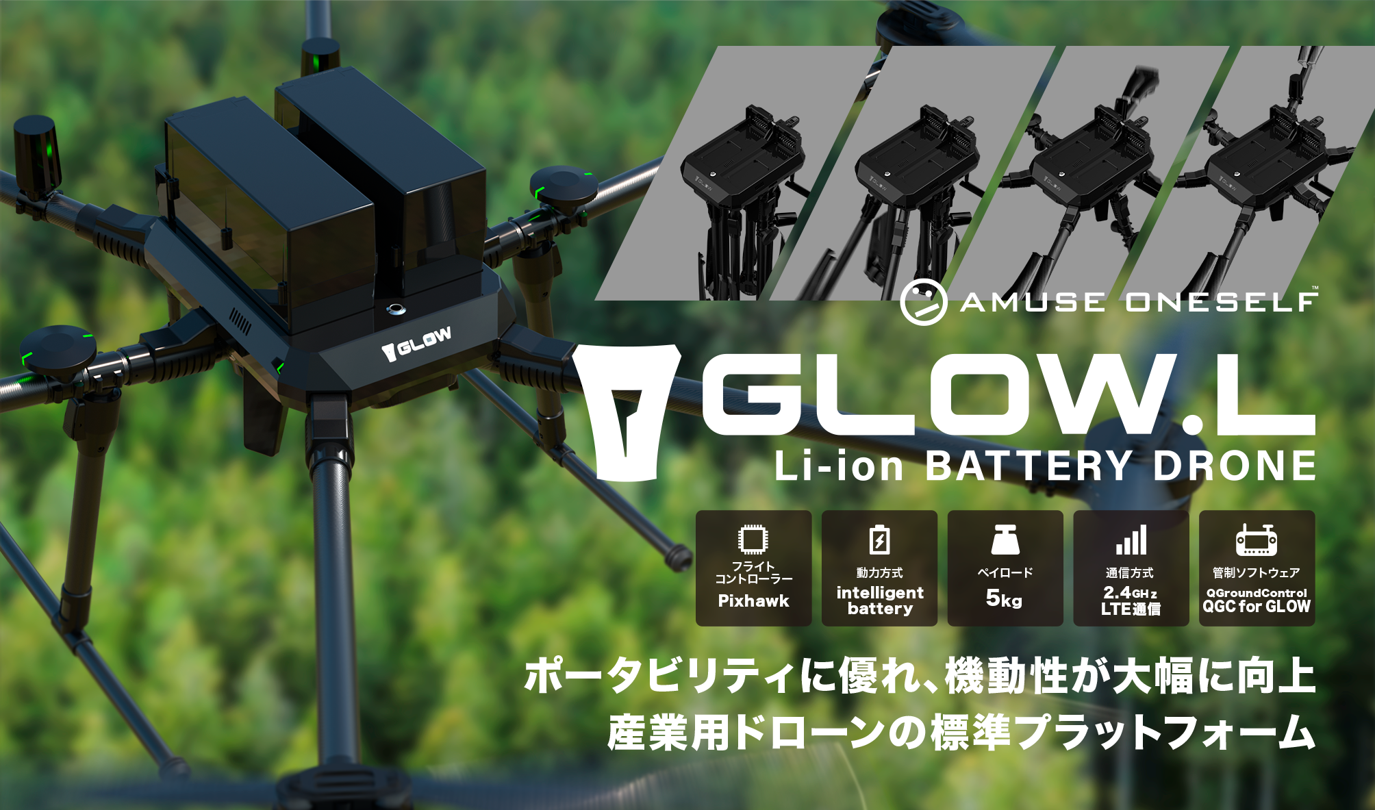 株式会社amus oneself 長時間飛行が可能なハイブリッド式ドローン機動性が大幅に向上したインテリジェンスバッテリー式ドローン国産ドローン「GLOW」シリーズ、2機種を販売開始