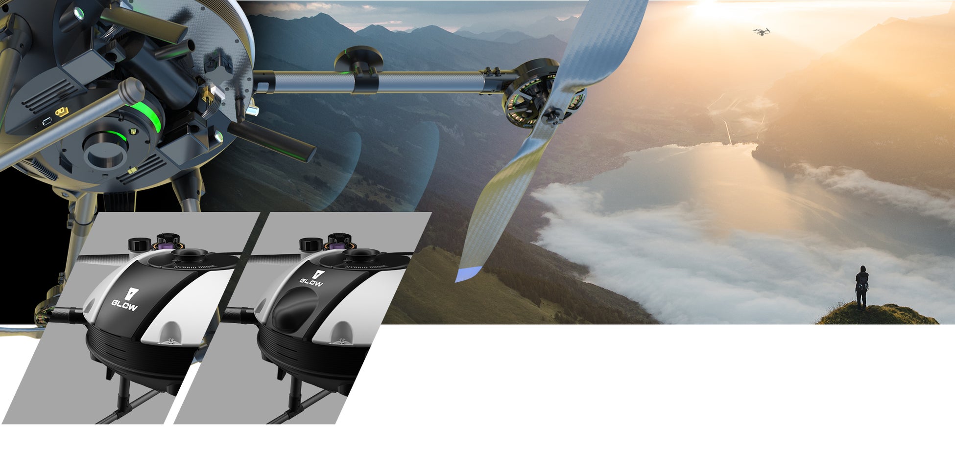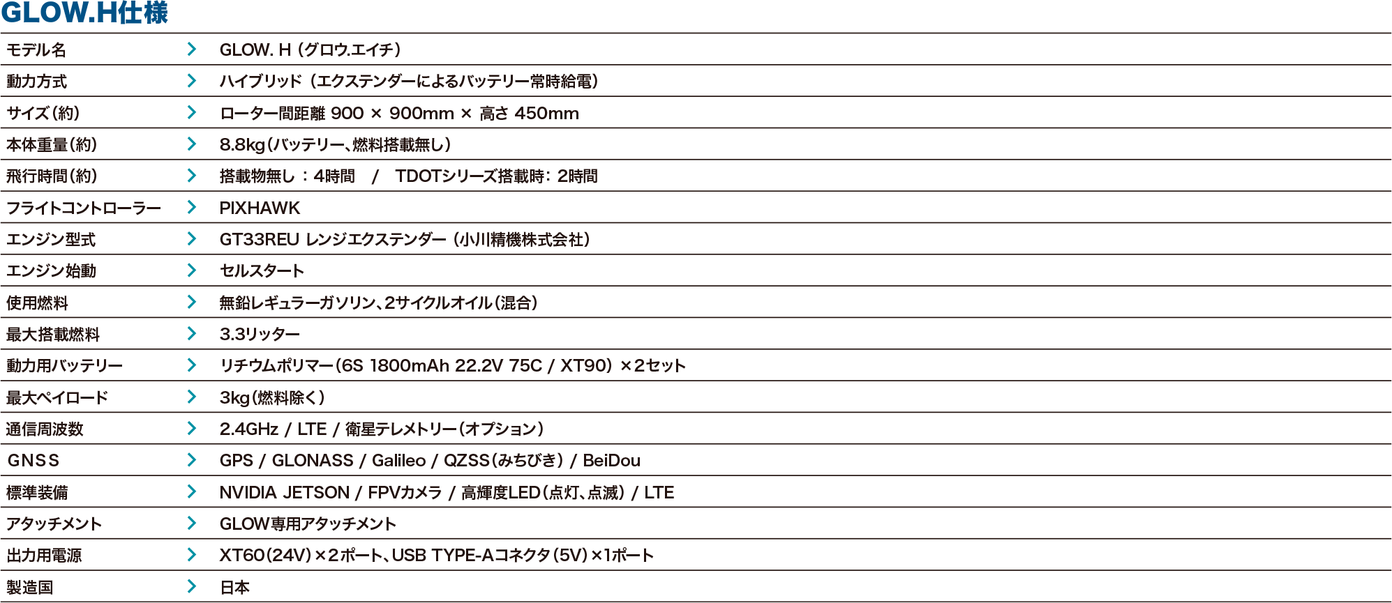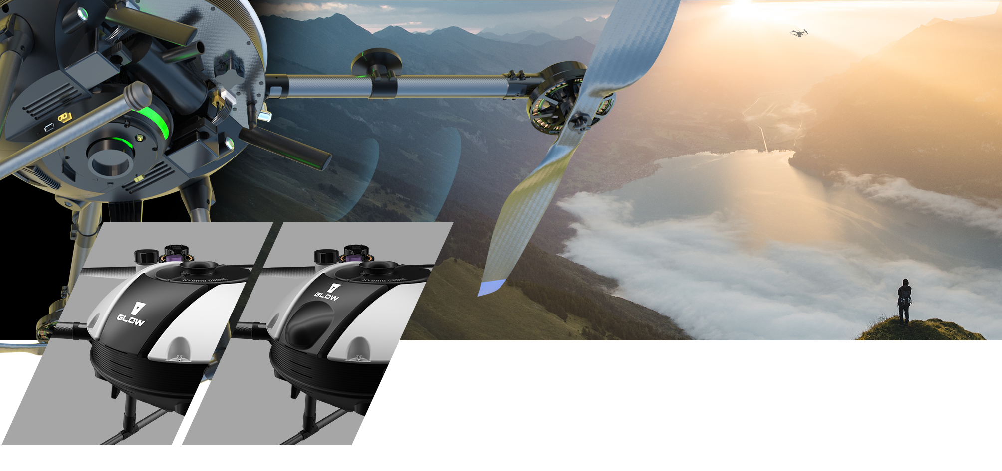 株式会社amus oneself 長時間飛行が可能なハイブリッド式ドローン機動性が大幅に向上したインテリジェンスバッテリー式ドローン国産ドローン「GLOW」シリーズ、2機種を販売開始