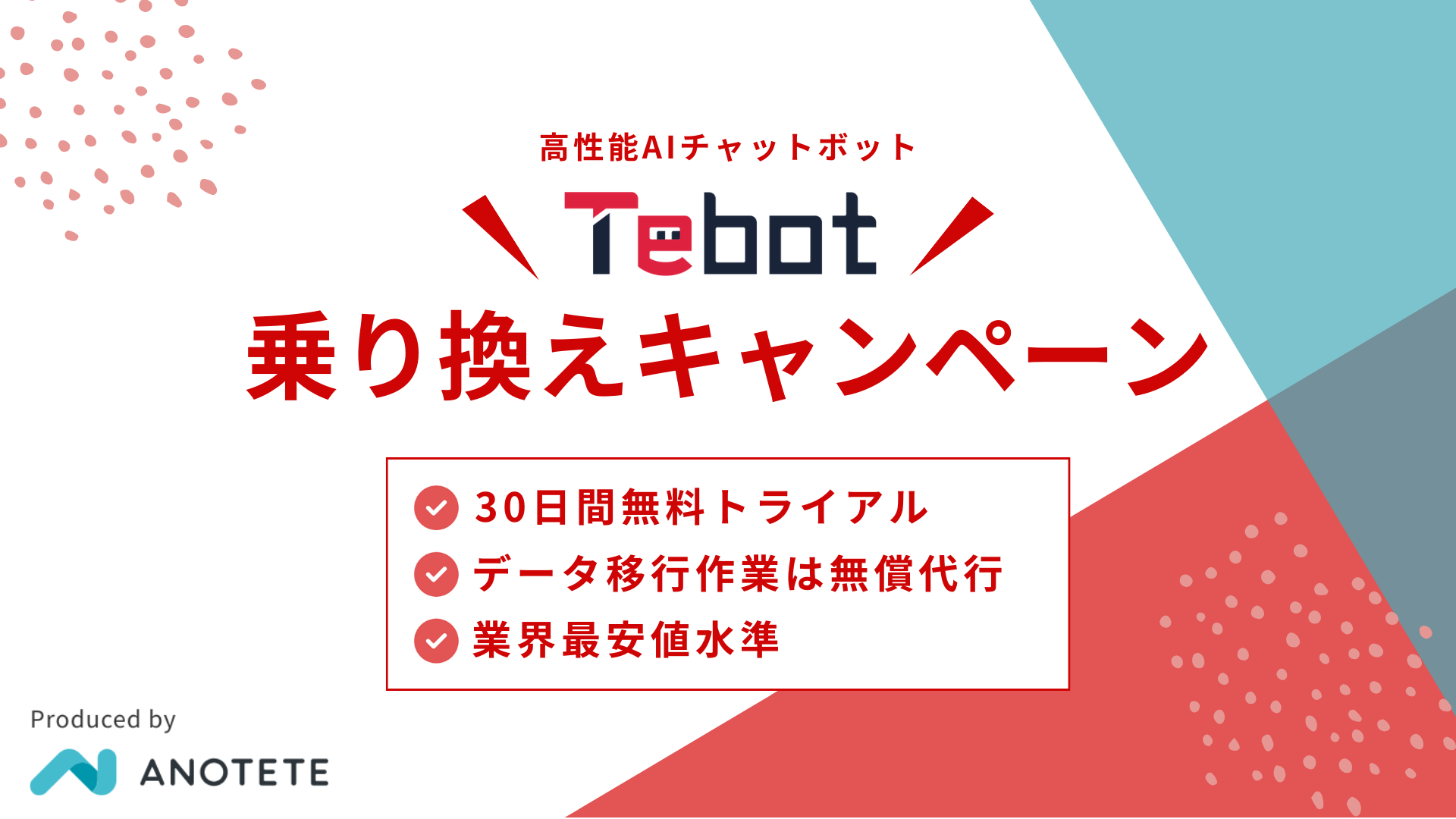 AIチャットボット「Tebot」、期間限定で「乗り換えキャンペーン」を実施