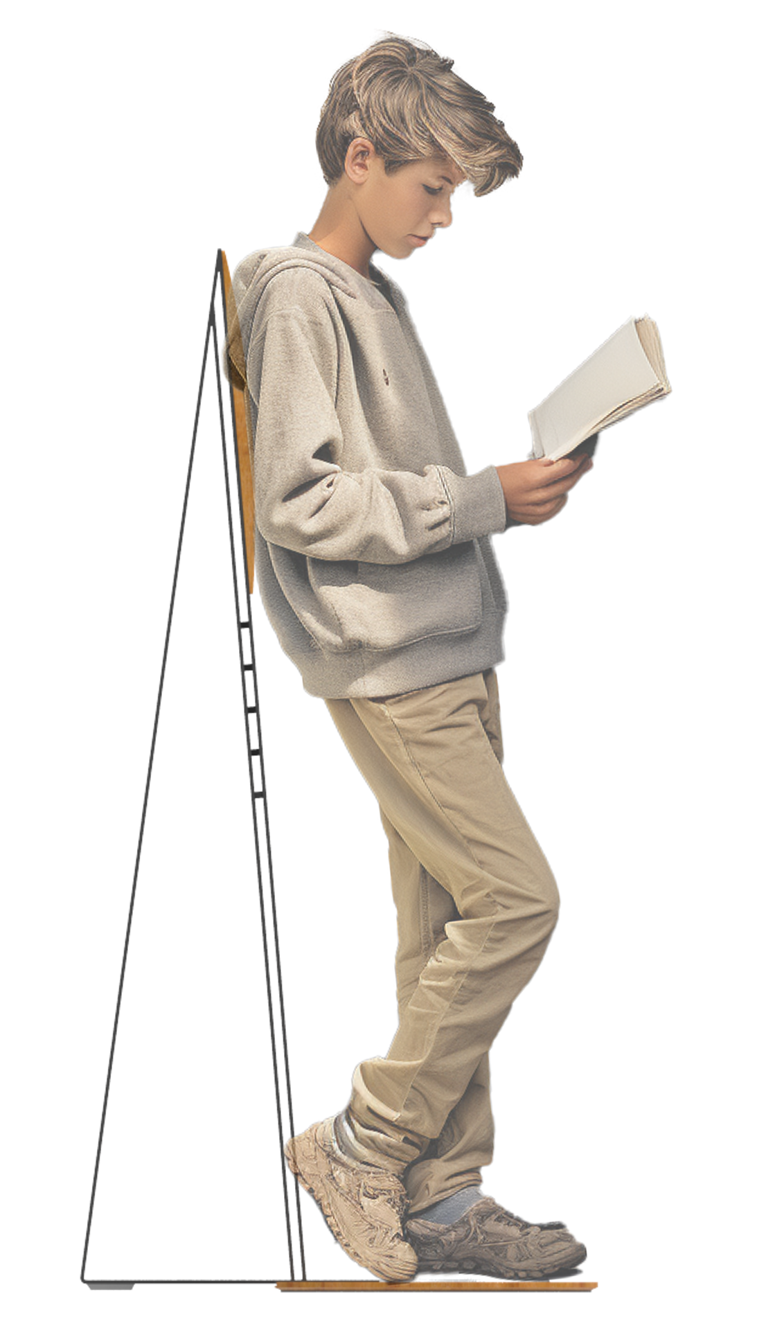 1:立姿勢や座り姿勢に加え、寄りかかり姿勢で体や脚への負担を軽減