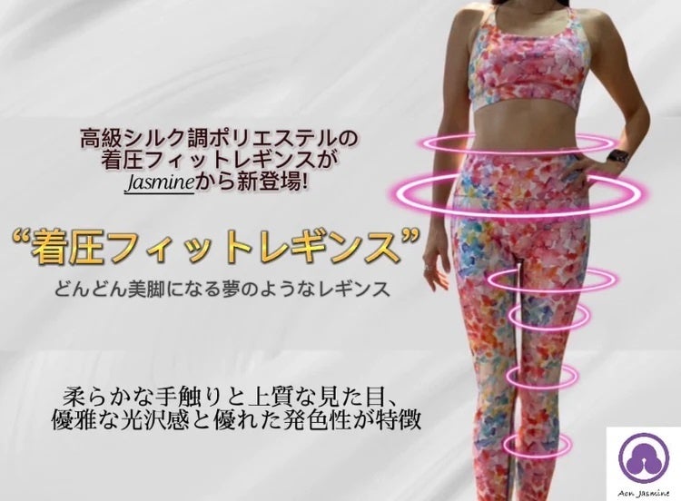 高級シルク調ポリエステルの着圧フィットレギンス柔らかな手触りと上質な見た目、優雅な光沢感と優れた発色性が特徴制作に一年かけてオーナー自らが生地から開発した履くだけで瞬間美脚、超強力着圧パワーのプレミアムライン