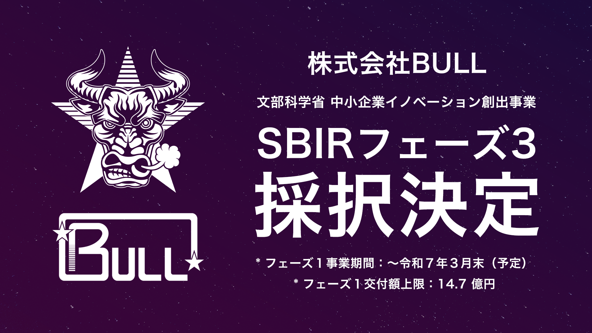 株式会社BULL、文部科学省の中小企業イノベーション創出事業(SBIRフェーズ3)に採択決定