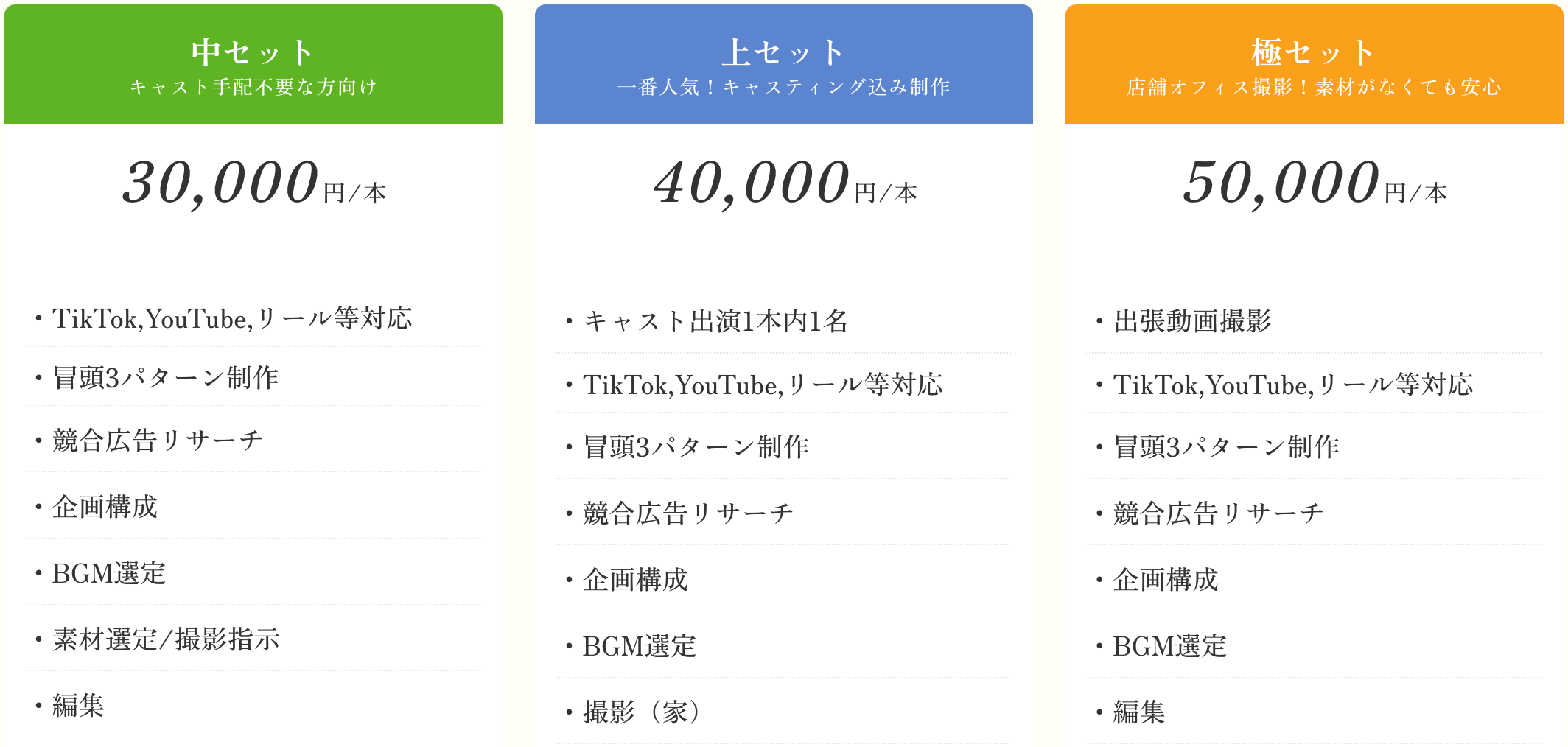1本4万円〜制作できる出張撮影セットをリリースいたしました。