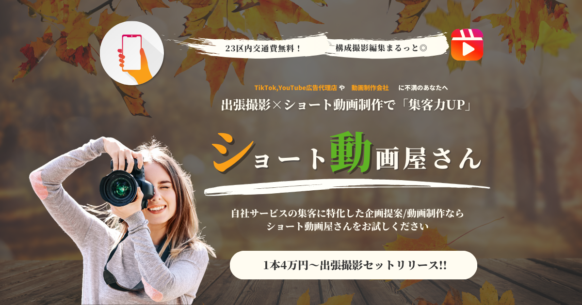 私たちは、ショート動画制作で価値を届ける1本20,000円〜高コスパの「ショート動画屋さん」です。