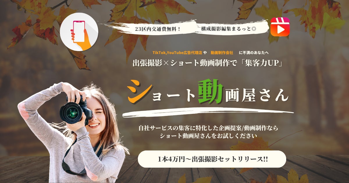 【新商品】1本2万円〜"ショート動画屋さん"を運営する「株式会社美手紙」から1本4万円〜出張撮影セットが新登場。23区内交通費無料+実店舗経営者TikTok,YouTube,リール広告大量制作に対応!