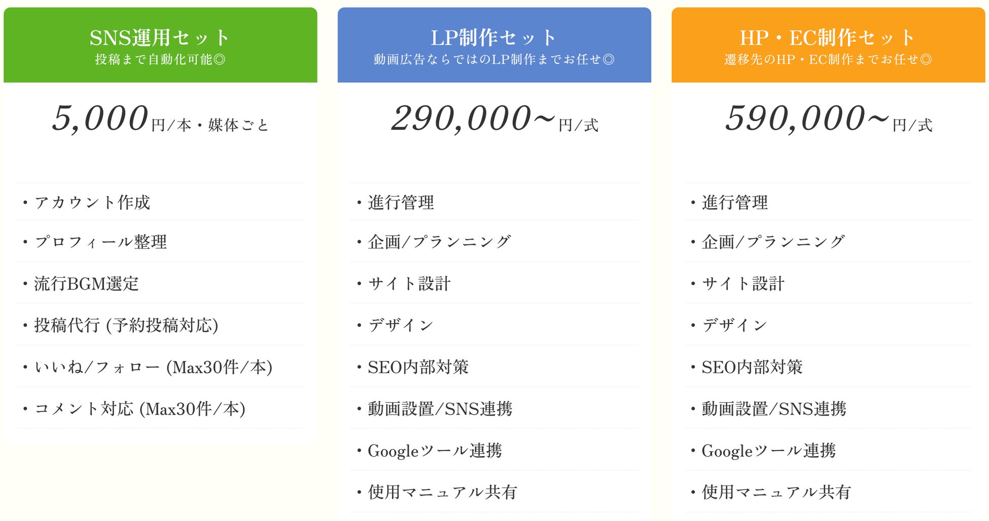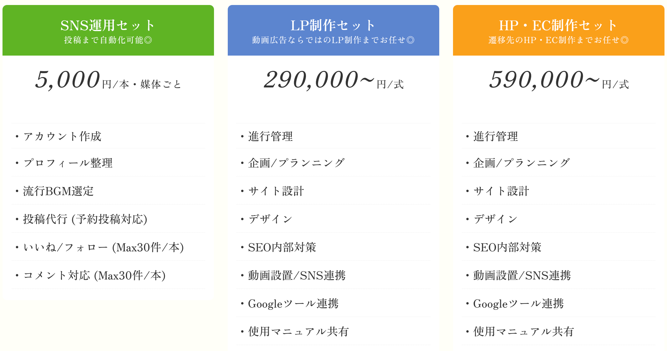 ショート動画制作までの必要箇所をフルサポートでご提供することにいたしました。