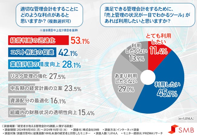 適切な管理会計に「経営判断の迅速化」の利点ありと半数以上が回答