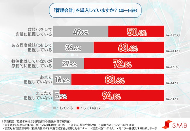 一方で「まったく把握していない」と回答した方の9割以上が管理会計を導入していないことも明らかとなりました。