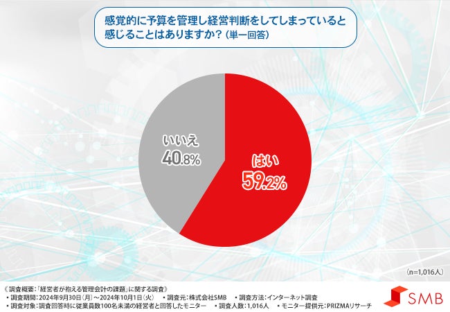「感覚的に予算を管理し経営判断をしてしまっていると感じることはありますか?」と質問したところ、『はい(59.2%)』『いいえ(40.8%)』という回答結果になりました。