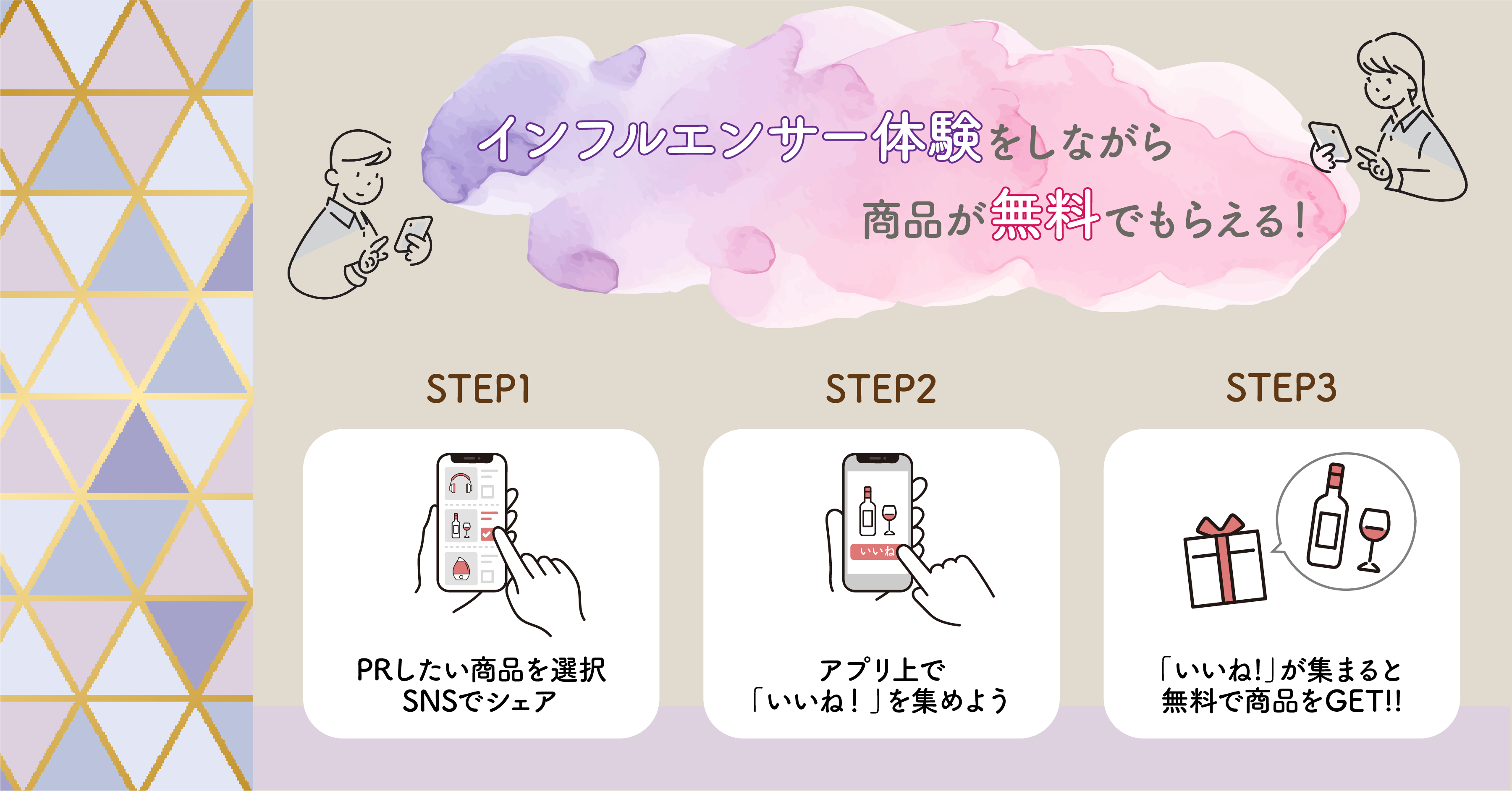 「ぐるかい」では、ユーザーが“インフルエンサーであるかような”商品のPR活動をSNS上で行います。