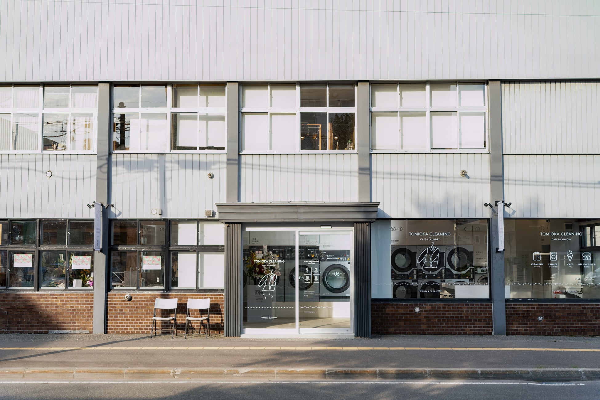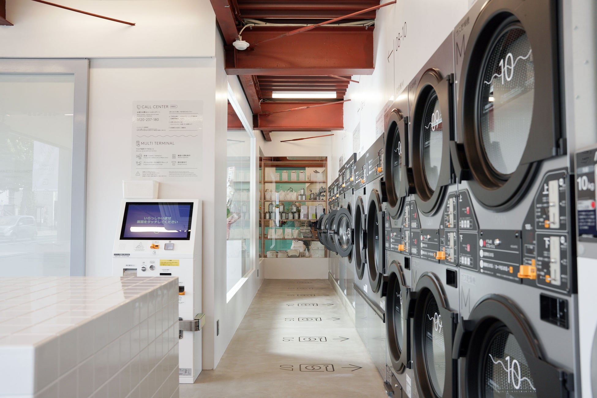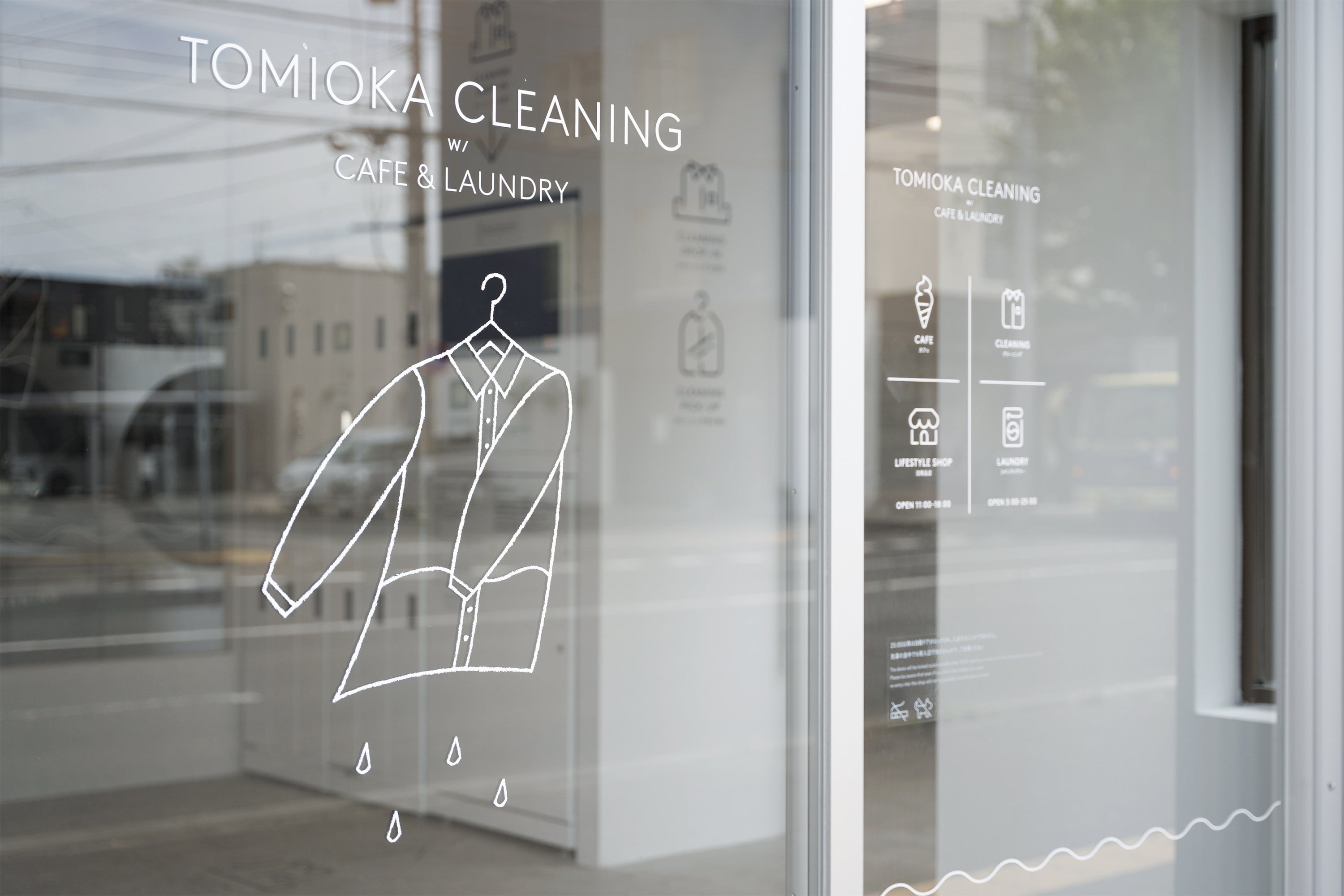 住宅街に位置し、広い駐車所も完備している利点や地域性を活かし、洗濯の待ち時間を有効利用いただけるよう、館内にはコインランドリーのほか、雑貨店、カフェスタンド、衣類や皮革製品のメンテナンス受付カウンターも集約させた施設をオープンするに至りました。またワークショップスペースも完備し、地域の集いの場に。洗濯にまつわるワークショップや、地域の作家やアーティストによるワークショップなどを企画・開催を予定しています。また観光スポットにも近く、ご旅行のお客様にも楽しんでいただけるコンセプトになっています。