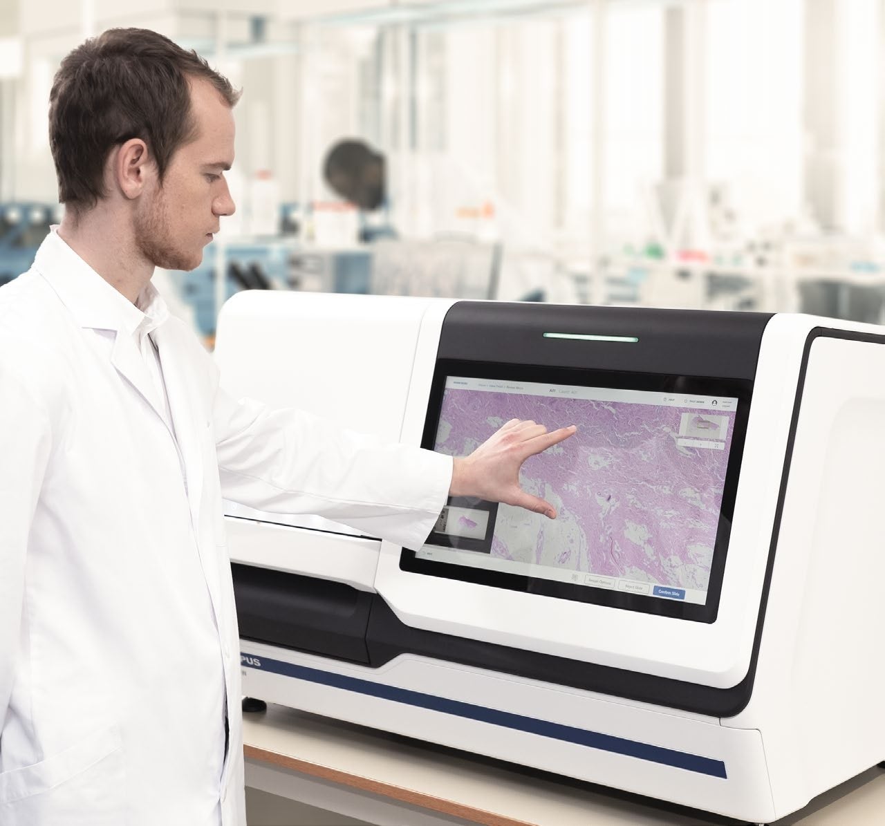 今回発売する「SLIDEVIEW VS-M1J」は、当社の高性能対物レンズ「X Line」をベースとした専用光学系の搭載により、顕微鏡観察と同様の画像データを取得し、より信頼度の高い検査をサポートします。また、大量のスライドガラス標本を短時間で処理できるスピードと大型タッチスクリーンの採用により、病理の作業ワークフローの効率向上に貢献します。