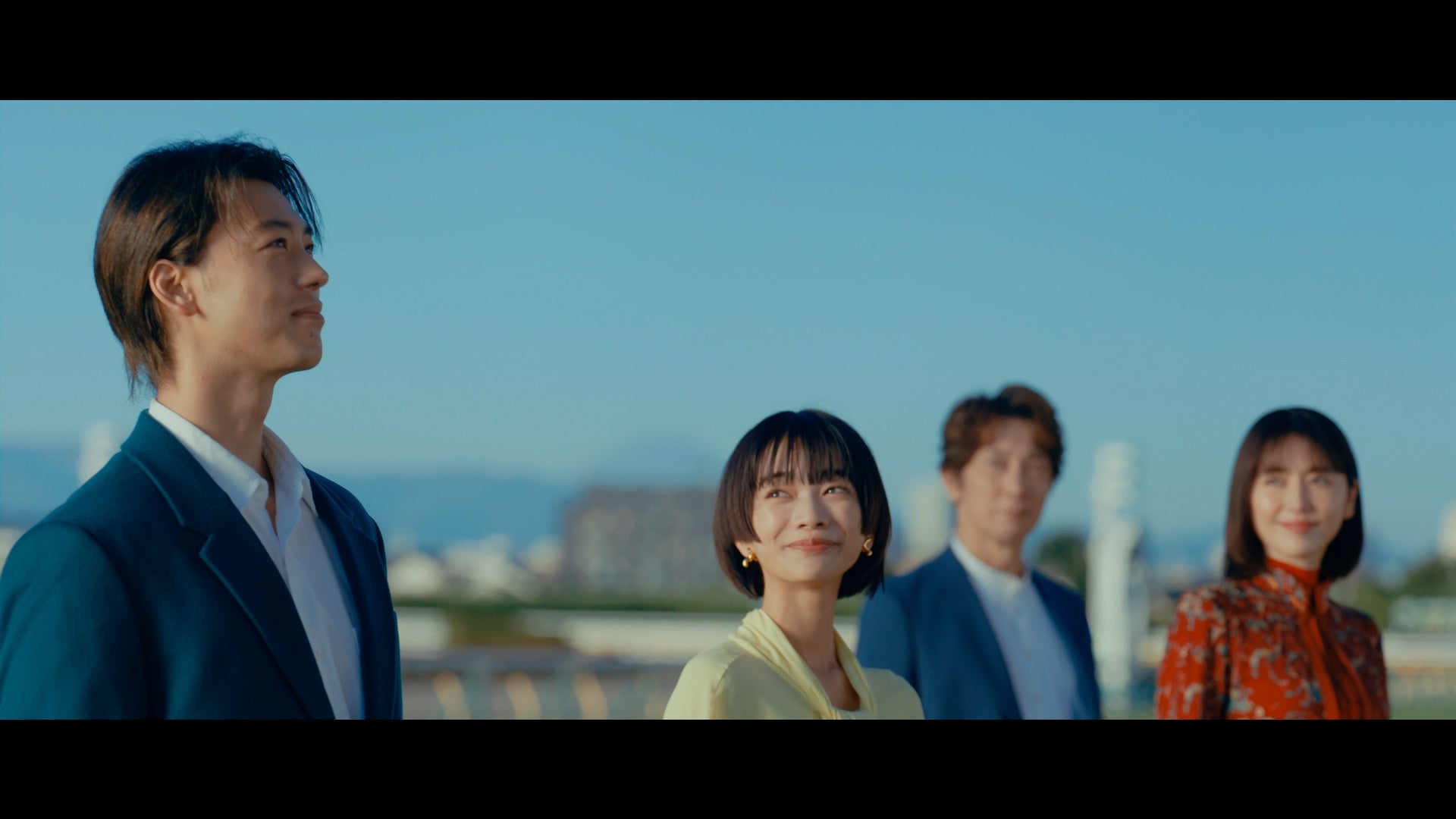 4人がターフに続く道を歩くシーンでは、長澤さんは鮮やかな赤、見上さんはまばゆい黄色のドレス、佐々木さんと竹内さんはスーツとバシッと決めた姿で、見ていてほれぼれするほどの美しさとカッコよさを見せてくれました。その後のスタンドでの長澤まさみさん、見上愛さん、佐々木蔵之介さんのシーン撮影では一転してなごやかな雰囲気を見せ、チームワークの良さを感じさせてくれました。また、長澤さんが竹内さんを競馬場に誘うシーンでは、2人が実際に撮影の合間であるかのようなざっくばらんな空気感を醸し出していました。
