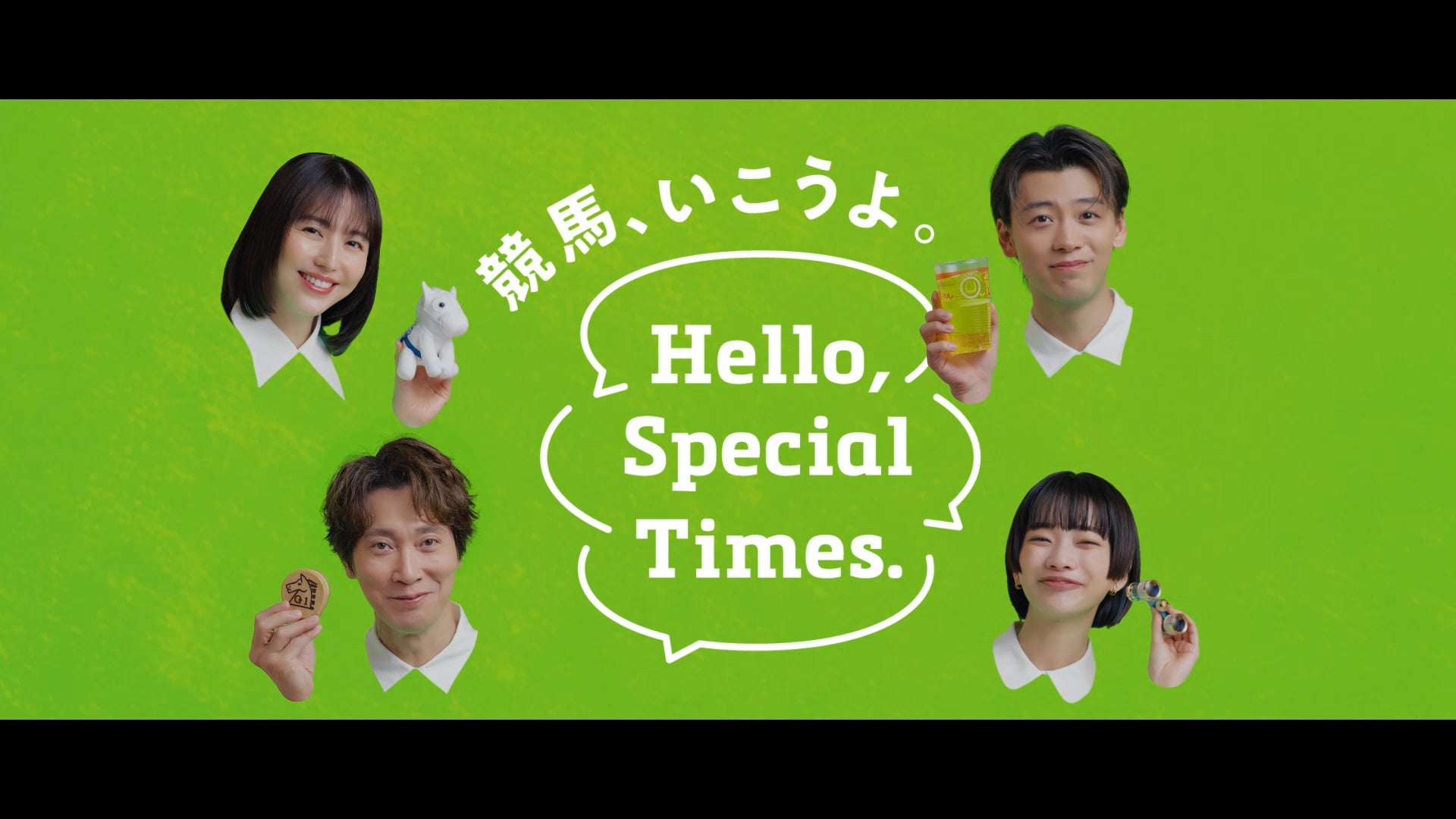 新テレビCM「Special Times」篇は、竹内涼真さんが、長澤まさみさん、見上愛さん、佐々木蔵之介さんとともに、仲間と一緒に競馬場で過ごす特別な時間や競馬の魅力について語り合う内容となっています。「始まり」篇は、競馬場の魅力を熱く語る長澤さんに、徐々に競馬に興味を持ち始める竹内さんの姿が収められたCMになっています。CMを盛り上げる楽曲には、若い世代を中心に人気を集めるバンド「緑黄色社会」の、2020年に発表された代表曲「Mela!」を使用。 CMの雰囲気ともマッチした、楽しさや軽やかさを感じられる楽曲が、「Hello,Special Times.」の世界観を強く印象づけます。