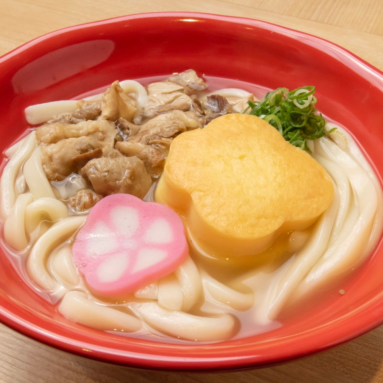 今回、魚のすり身を卵でとき、それを梅の型に入れて柔らかくふわふわに焼きあげてた関西ではお馴染みのおでんの具をトッピングいたしました。ダシをたっぷり吸う特徴からおでんの具に重宝され、長年愛されてきた具です。今回は当店名物の平打ち麺のうどんにこの「梅焼き」をトッピングした新名物「大阪うめでとーうどん」を春から大阪で新生活を迎える学生、新成人の皆様に新名物を味わってもらって大いに活躍していただこうという思いを込めてキャンペーンを実施いたします!