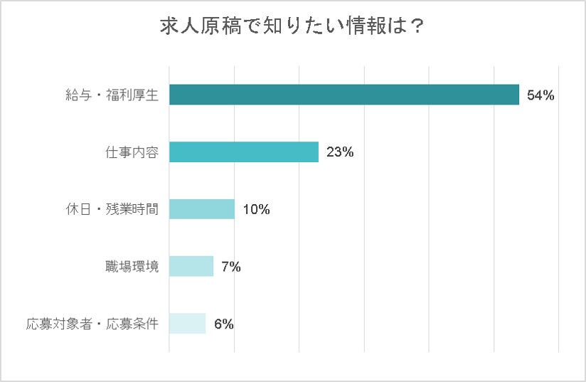 求人原稿で知りたい内容についても20代の結果と変わらず、「給与・福利厚生」が最も高い結果となりました。