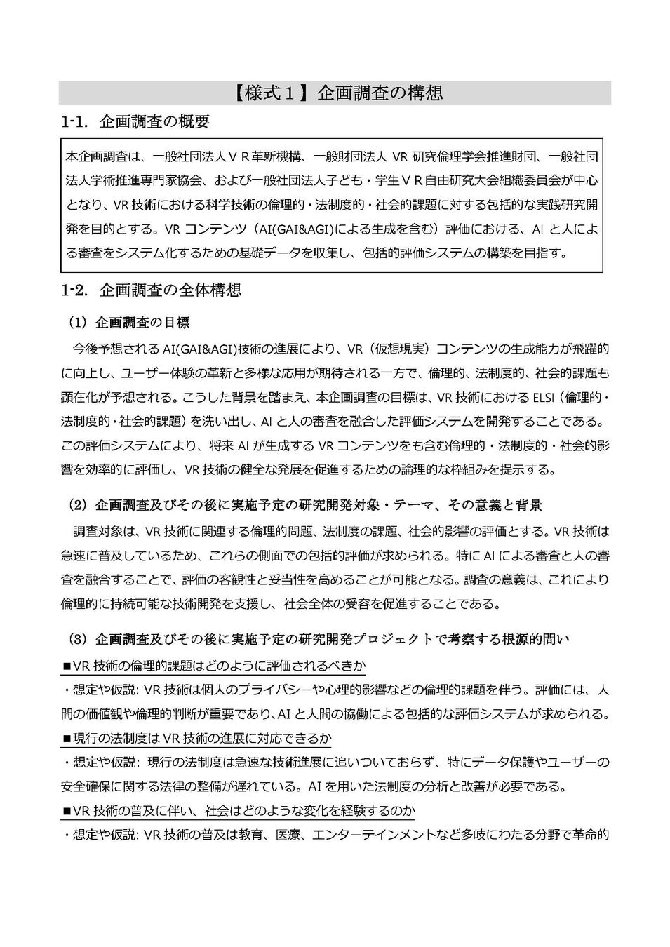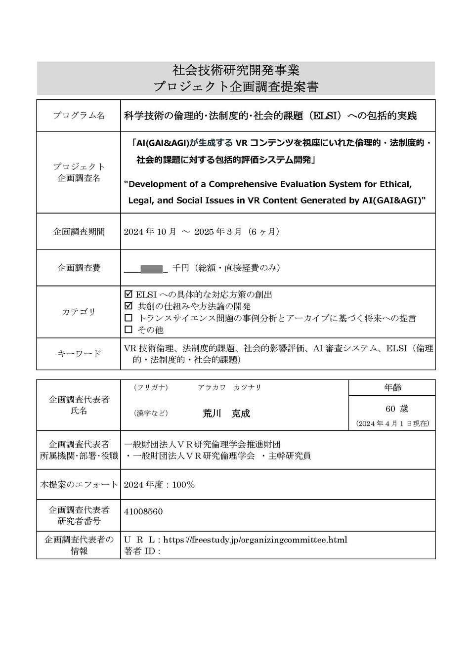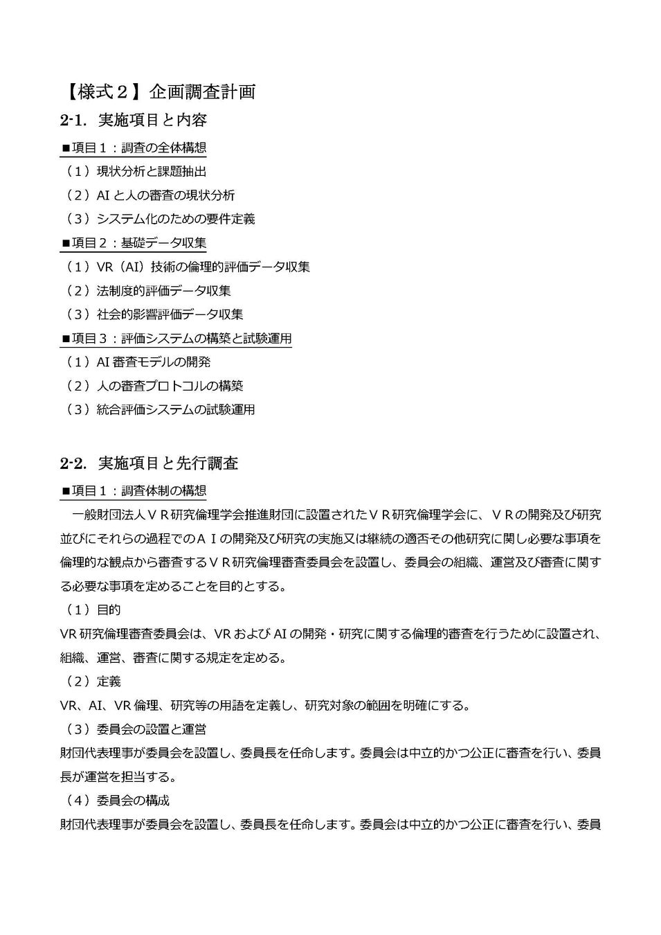 加えて、当財団は、VR研究倫理審査委員会の創設に加え、「AI(GAI&AGI)が生成するVRコンテンツを視座にいれた倫理的・法制度的・社会的課題に対する包括的評価システム開発の調査」を国の競争的研究費に提案申請しました。倫理評価システムの研究・開発にも取り組んでまいります。
