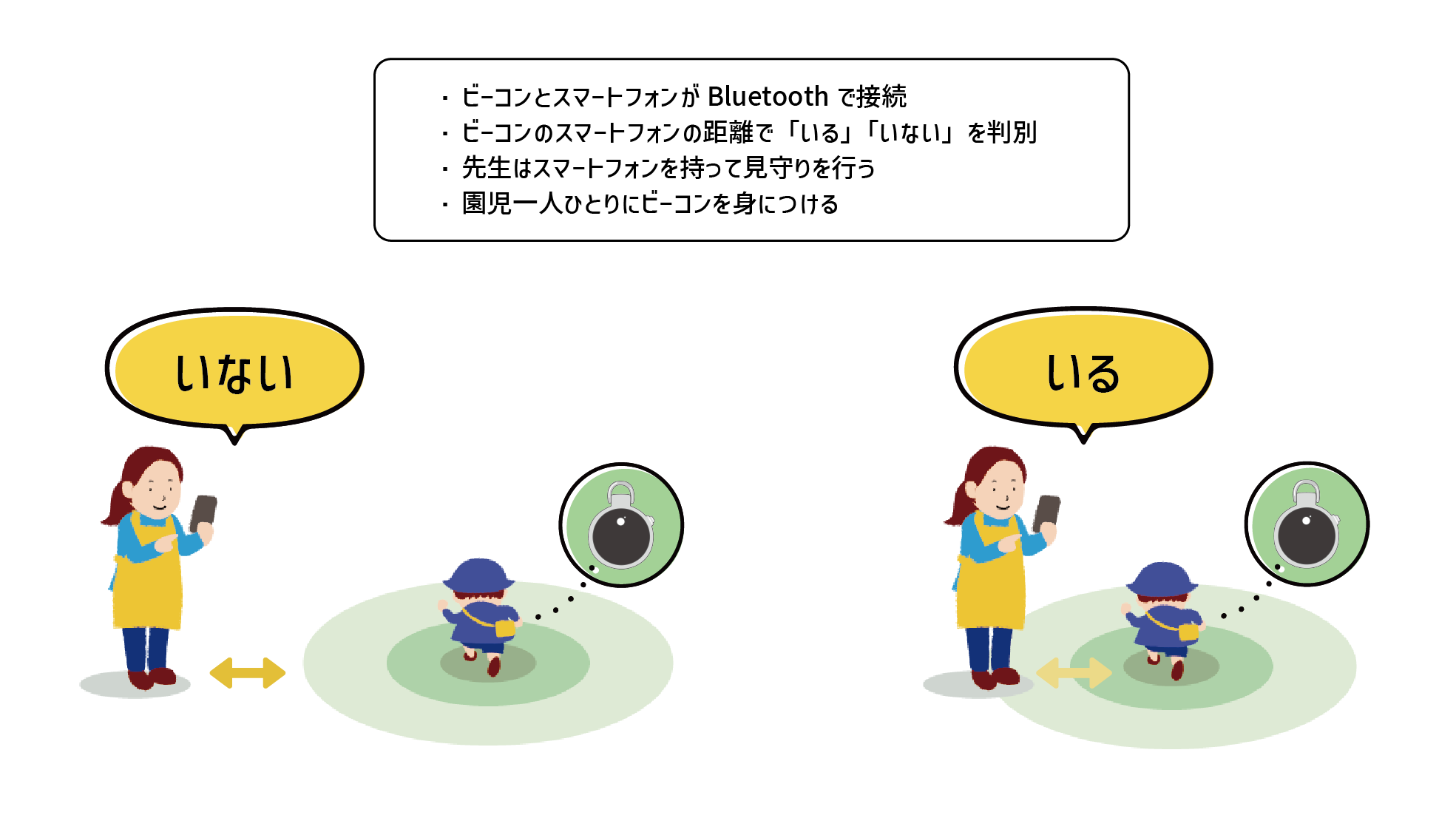新しい見守りツール「びーこんうぉっち」は、アプリとビーコンで園児を見守ります!