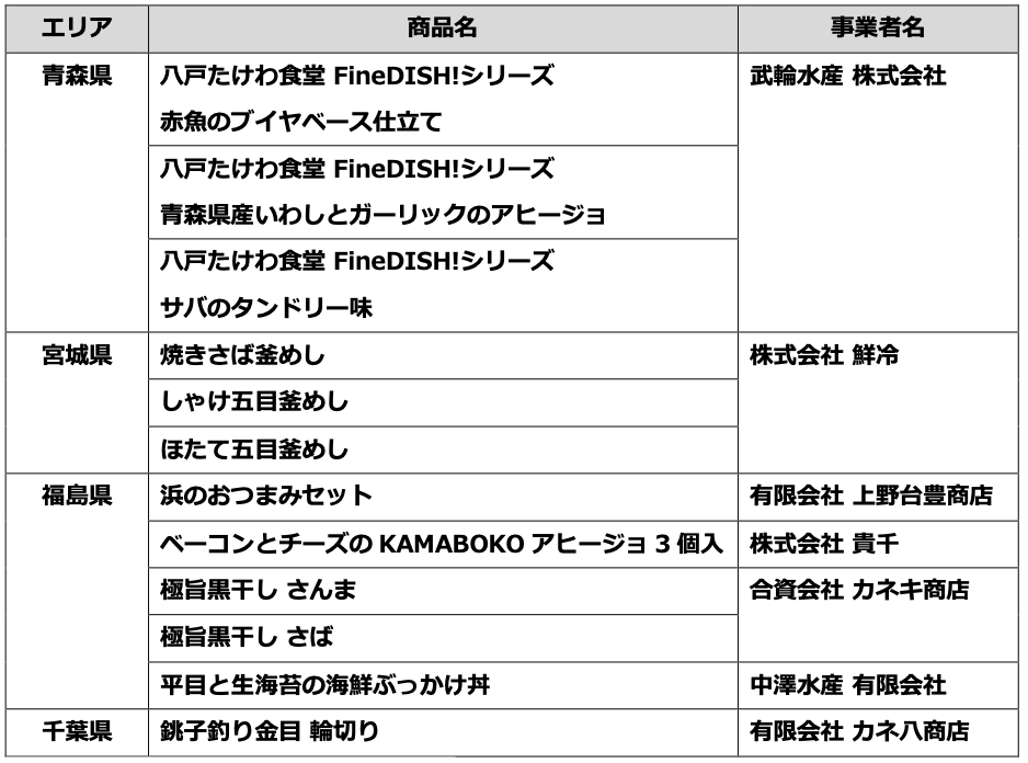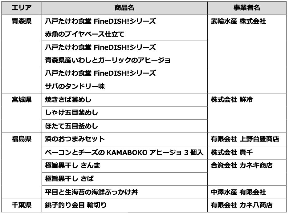 本事業で開発・リニューアルした商品の第三弾として、2023年12月18日(月)より、青森県・宮城県・福島県・千葉県の海の幸を使用した商品をECサイトにて発売します。