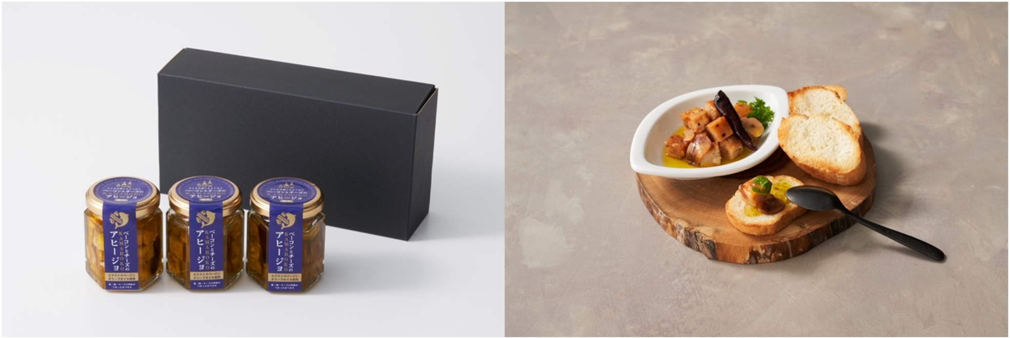 魚肉にチーズ、豚バラベーコン、ブラックペッパーをたっぷり練り込んで焼き上げた後、ダイスカットし、鷹の爪、ニンニク、エクストラバージンオイルと共に瓶詰しレトルトしました。オリーブオイルとニンニクで煮込むスペイン料理「アヒージョ」をイメージしました。20~60代のお酒好き・チーズ好きな男女、手間をかけずにおしゃれなおつまみを食べたい女性や若い世代にもおすすめです。