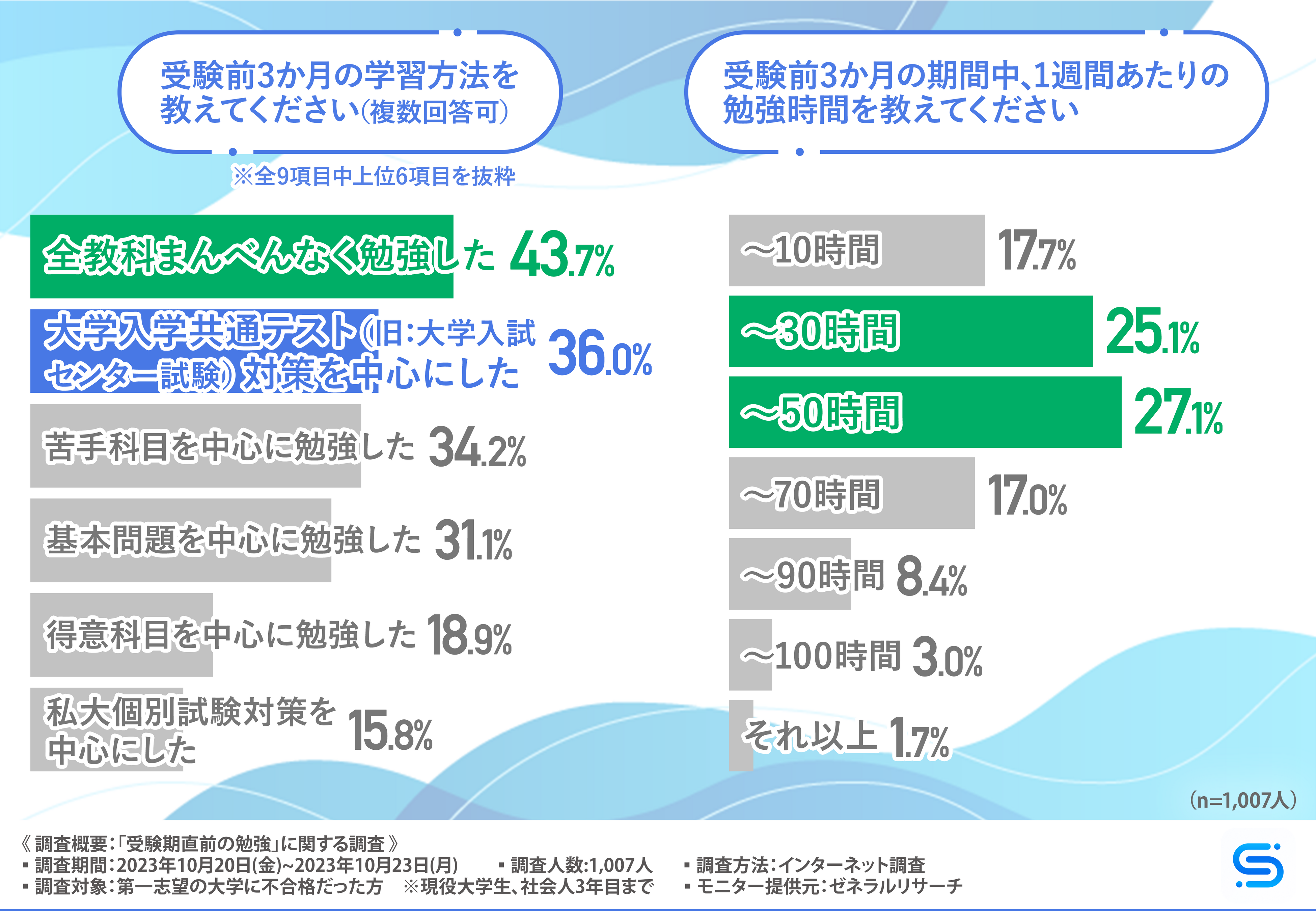 そこで今回、人工知能を活用した新しい相談サービス「Experienshare(https://hello.experienshare.com/ja/)」を提供する株式会社greedenは第一志望の大学に不合格だった方を対象に「受験期直前の勉強」に関する調査を実施しました。