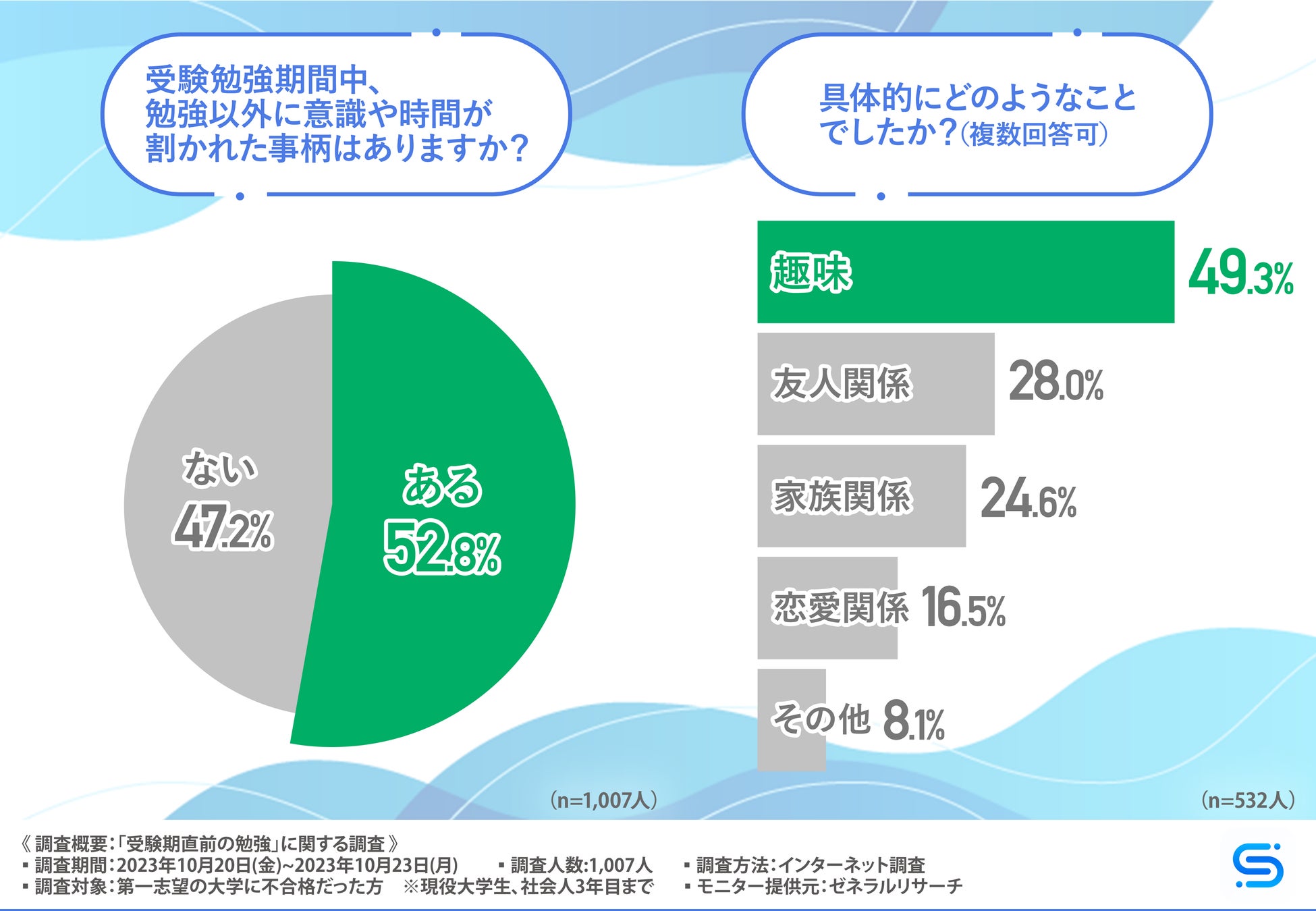 受験勉強期間中、約半数が勉強以外に意識や時間が割かれたと回答!何に時間を費やした?