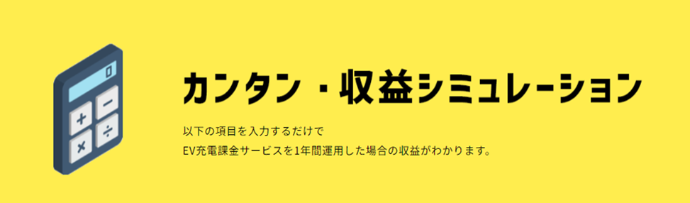 EV充電器を設置する施設は、集客力の向上、また滞在時間の増加により売上の上昇につながる効果が期待できます。一方、EVステーションを運営していくには、運営コストを把握することが課題となります。今回新たに追加した弊社ホームページの『カンタン・収益シミュレーション』を利用すれば、EVステーションの運営コストを把握できるだけでなく、他社サービスとの比較検討、また「充電器を何台設置することがベストか」などの判断にもご利用いただけます。