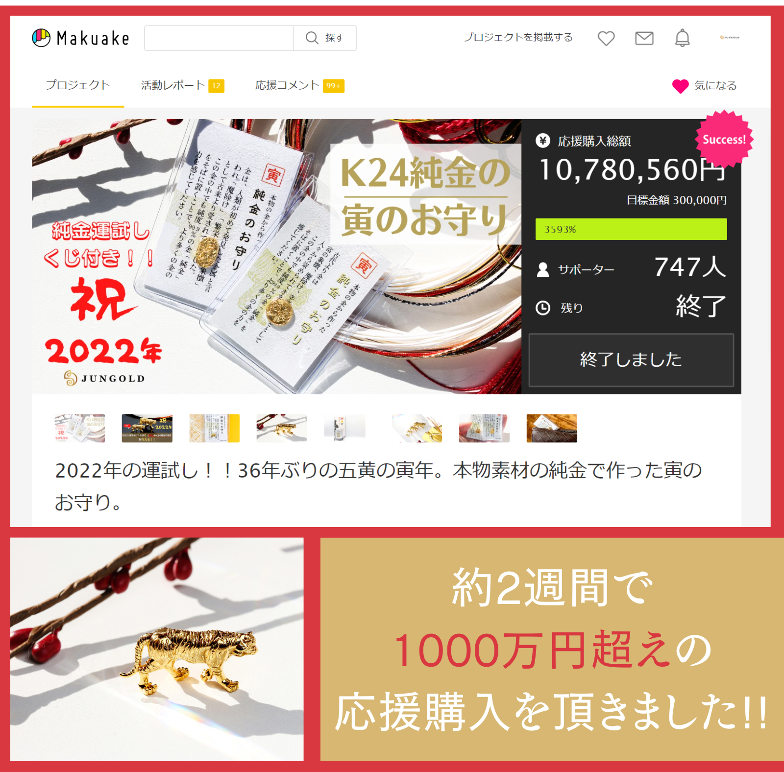 純金の兎年のお守りプロジェクトも残すところあと3日となりました。