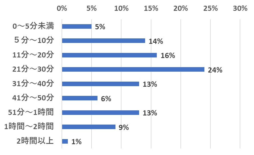 「1日にニュースをどのくらいの時間見ますか?」という質問に対して、最も多かった回答は「21分〜30分」(24%)でした。