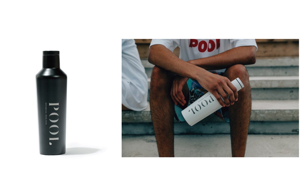 持ち運び可能なスクリューキャップのボトルタイプで、真空スリーレイヤー構造・BPA&鉛フリー・製氷機の氷も入る大きな口が特徴のCORKCICLE.とのダブルネーム商品。オリジナルの「POOL」ロゴ入り。