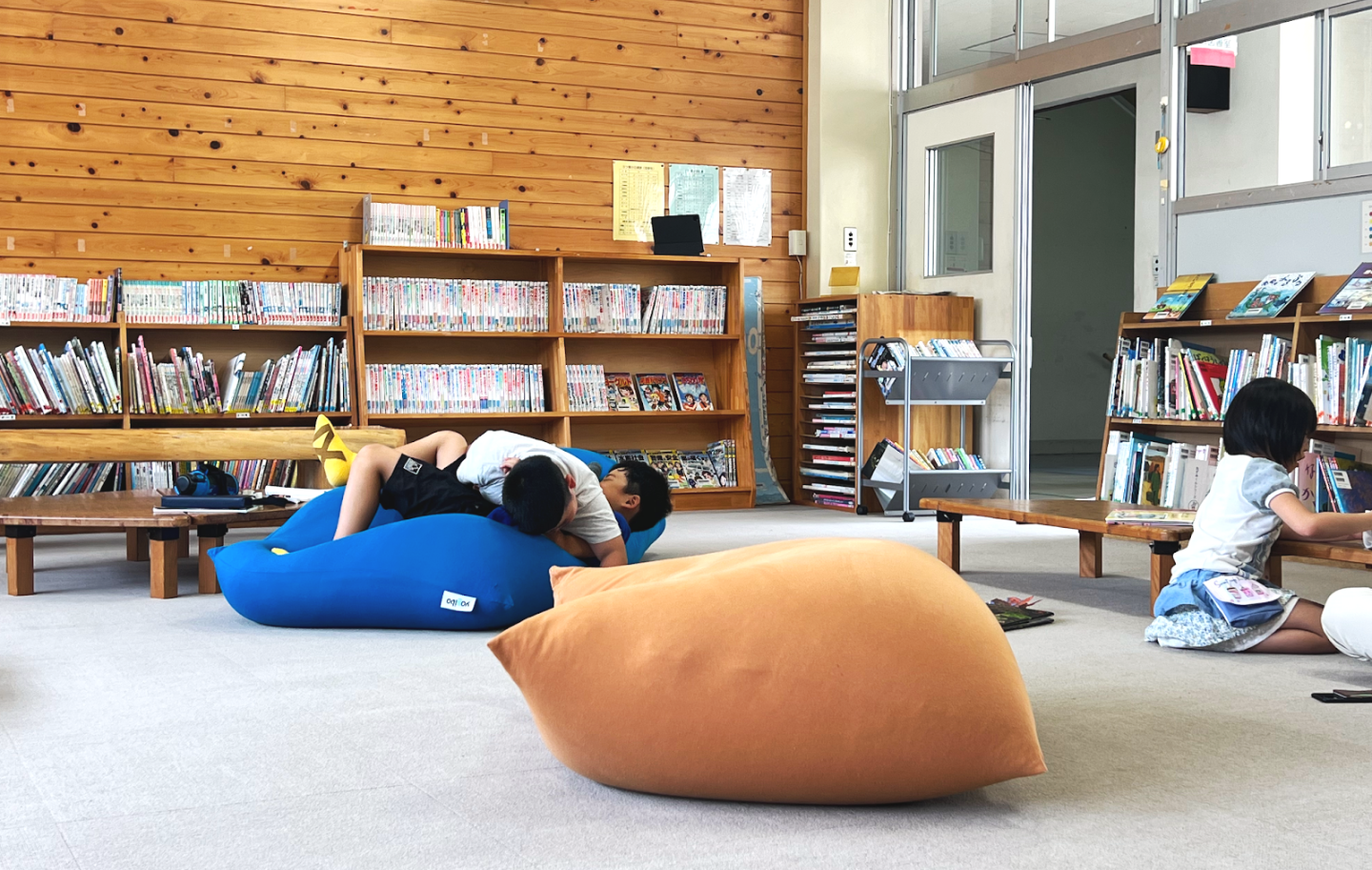 「ある朝2階に上がると、始業前の図書室の廊下に上履きが2足置かれていました。誰が使っているのかと覗いてみると、4年生の子たちが2人、仲良く並んで本を読んでいました。体を深くYogiboに埋めて、満足げな表情でしたね」