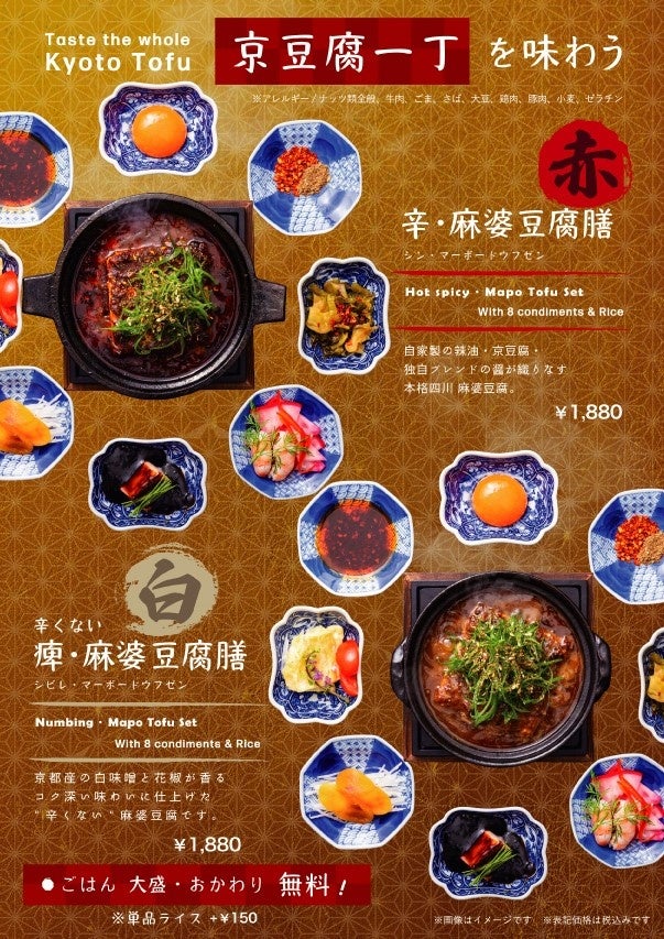 京都の歴史と伝統を感じさせる京豆腐一丁を使った麻婆豆腐は、地元の食材を活かした地域性と新しい味わいの発見で、特別な食体験をお届けいたします。