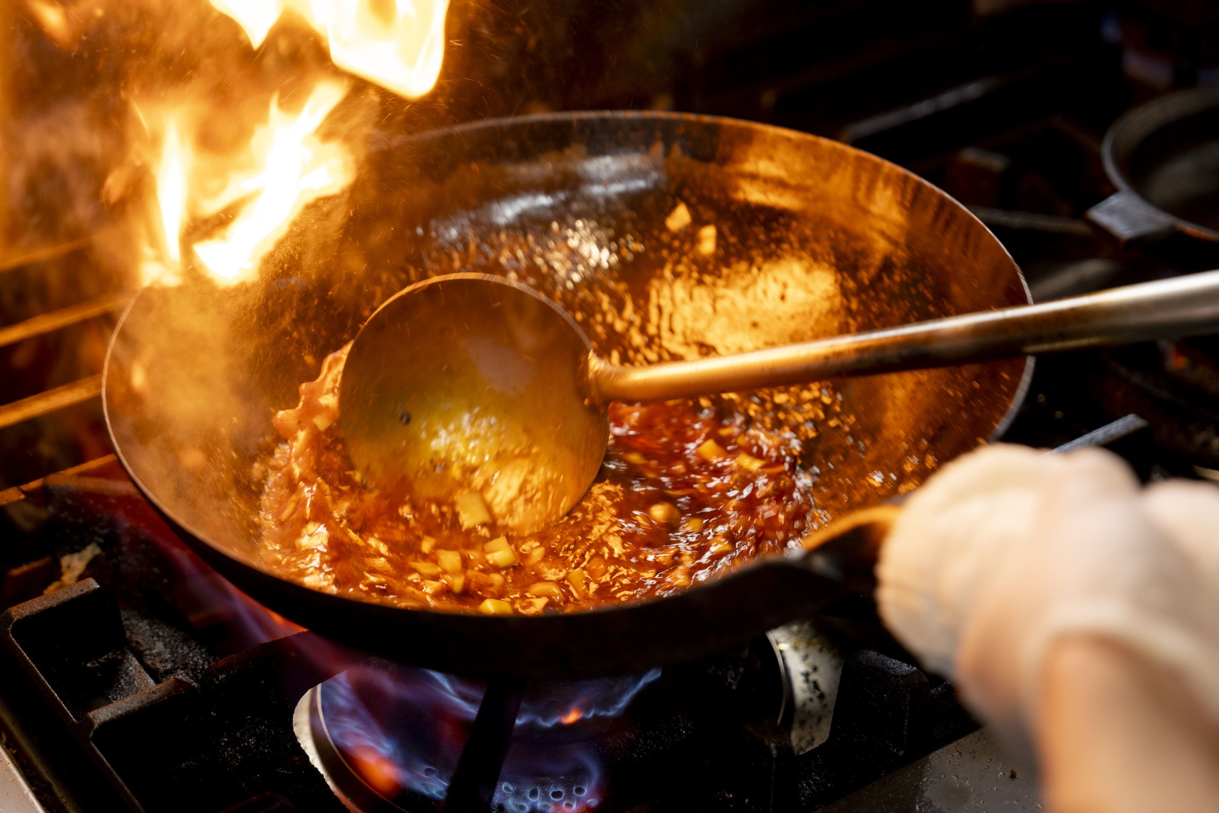 京豆腐一丁をその場で蒸し揚げ、自家製辣油をふんだんに使用した麻婆を絡めることで、今までにはない濃厚で深みのある麻婆豆腐を味わうことができます。