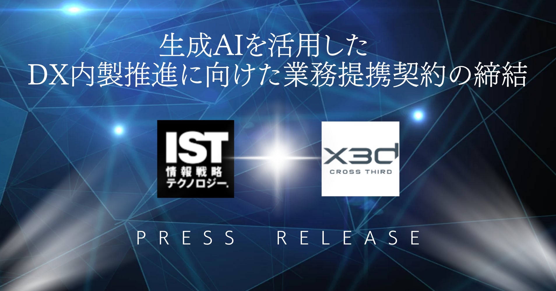 x3d株式会社(本社:東京都港区、代表取締役:武石 幸之助、以下「当社」)は、大手企業向けに内製型DX支援事業(0次DX)を展開する株式会社情報戦略テクノロジー(本社:東京都渋谷区、代表取締役社長:髙井 淳、以下「情報戦略テクノロジー社」)と、生成AIを活用したDX内製支援に関する業務提携契約を締結したことをお知らせします。