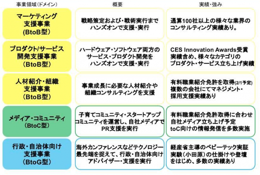 コンサルティング領域における実績と強みを活かし、BtoBからBtoC、BtoGまで幅広い事業を展開。企業と人のそれぞれに伴走する事業モデルを通じてこどもの未来につながるサステナブルな事業成長を実現していきます。