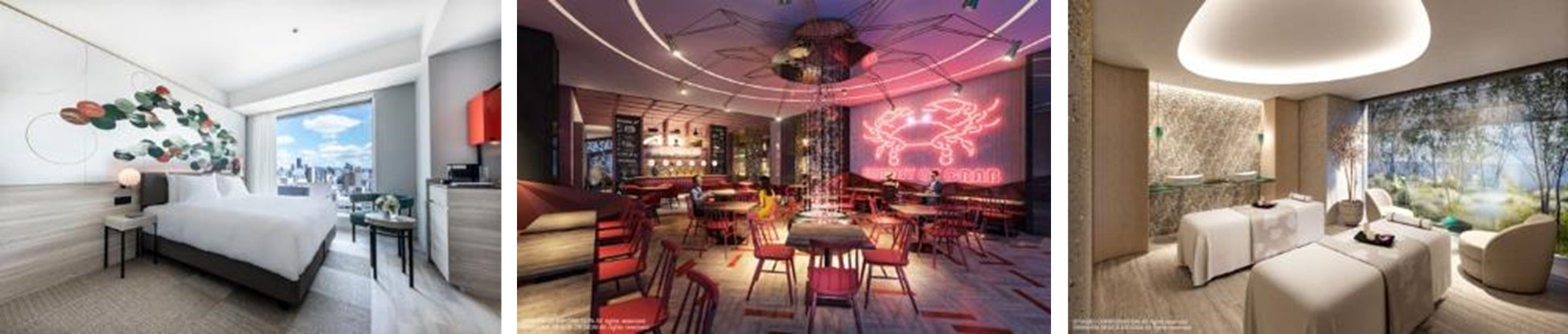 大阪の新たなランドマークとして2023年7月に開業したセンタラグランドホテル大阪は、タイのセンタラ ホテルズ&リゾーツが手掛ける高級ホテルブランドの日本第一号店です。 活気あるエンターテインメントとショッピングの街、なんばの中心に位置する33階建のこのホテルは、スイートやコネクティングルームを含む 515室の客室とクラブラウンジを備えています。館内には8つのレストランとバーがあり、最上階には大阪の絶景が見渡せる素晴らしいルーフトップレストランがオープンするほか、伝統的なタイ料理や特製シーフード、本格的なステーキや燻製料理など、幅広いダイニングエクスペリエンスをお楽しみいただけます。